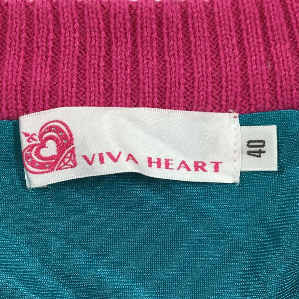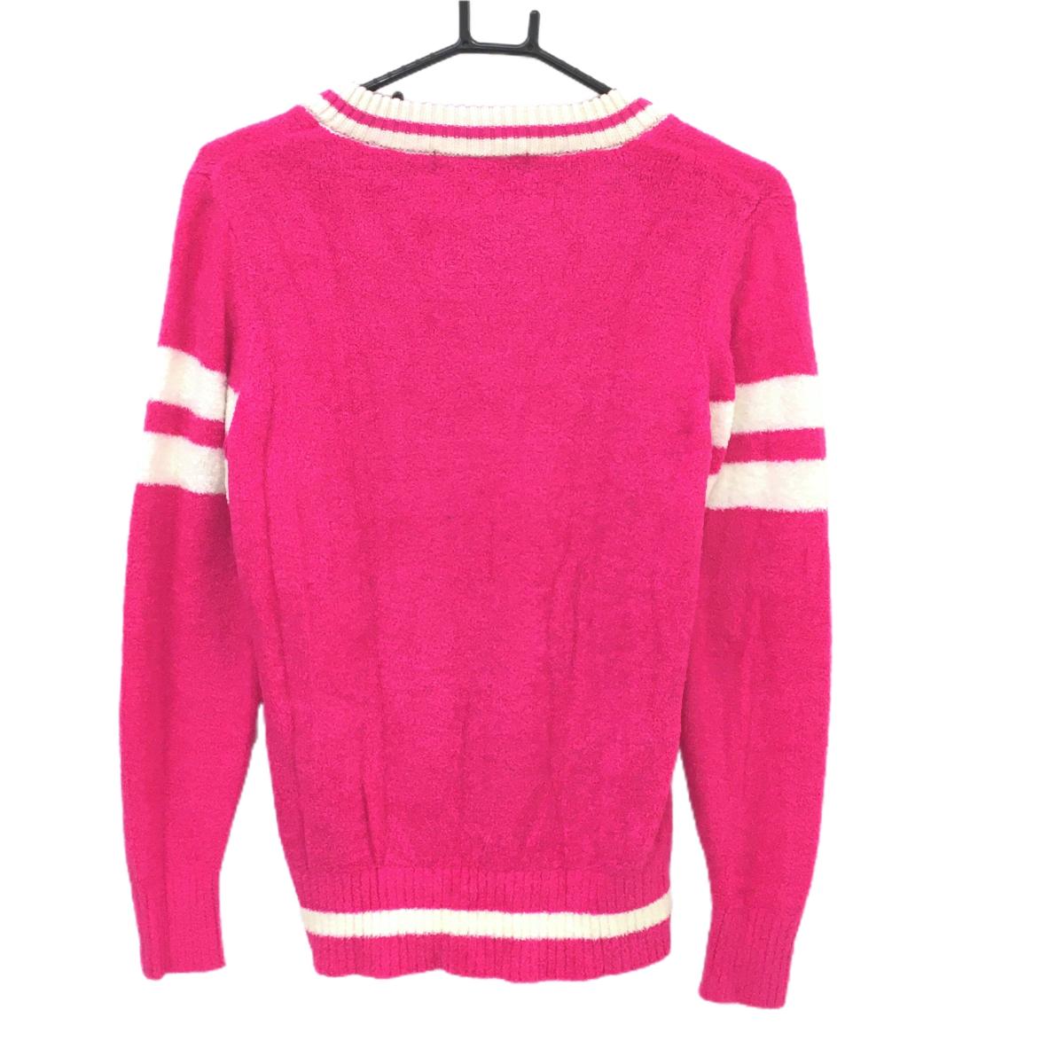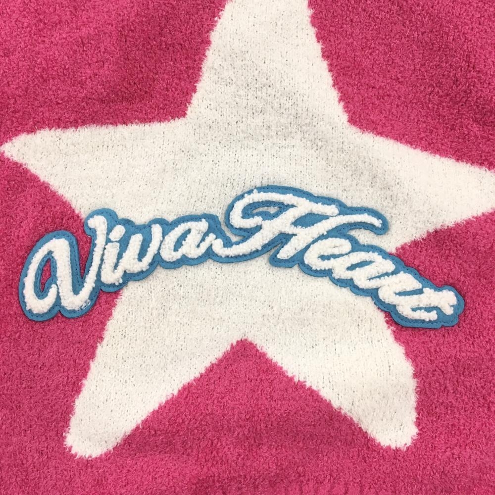 【超美品】ビバハート 裏地付セーター ピンク×白 Vネック 星 ウール混 レディース 40(M) ゴルフウェア VIVA HEART