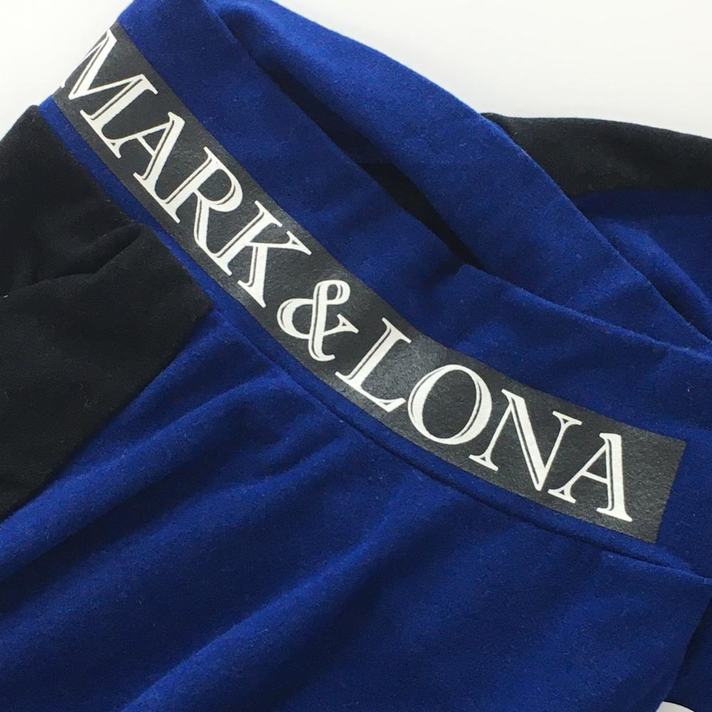 【美品】マークアンドロナ 長袖ハイネックシャツ ブルー×黒 微起毛 スカル メンズ 46(M) ゴルフウェア 2024年モデル MARK&LONA
