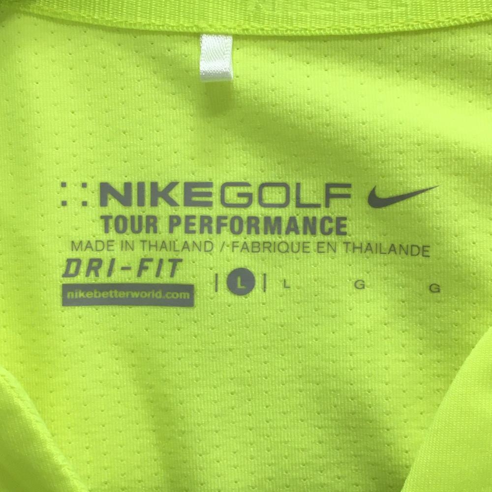 【超美品】ナイキゴルフ Tシャツ 蛍光イエロー キーネック DRY-FIT ストレッチ レディース L ゴルフウェア NIKE