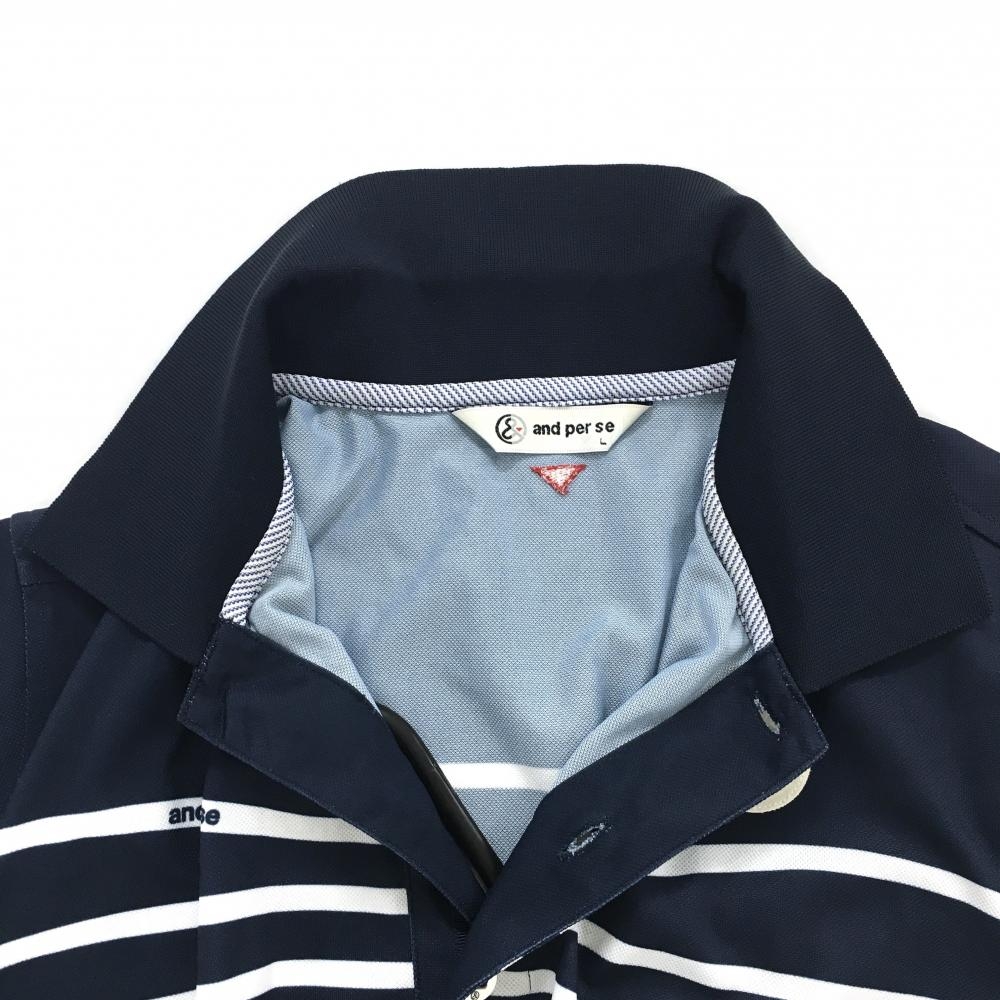 アンパスィ 半袖ポロシャツ ネイビー×白 ボーダー メンズ L ゴルフウェア and per se