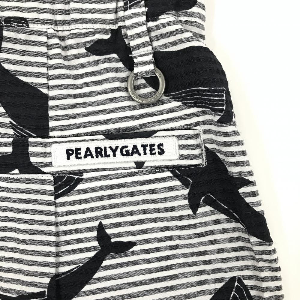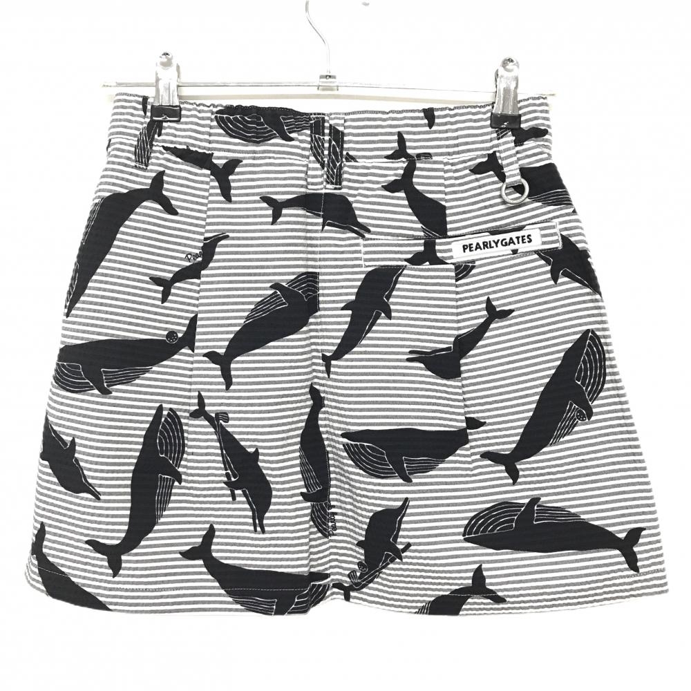 【新品】パーリーゲイツ スカート 白×グレー×黒 総柄 イルカ クジラ ボーダー レディース S ゴルフウェア PEARLY GATES
