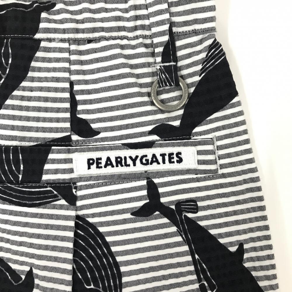 【新品】パーリーゲイツ スカート 白×グレー×黒 総柄 イルカ クジラ ボーダー レディース 0(S) ゴルフウェア PEARLY GATES