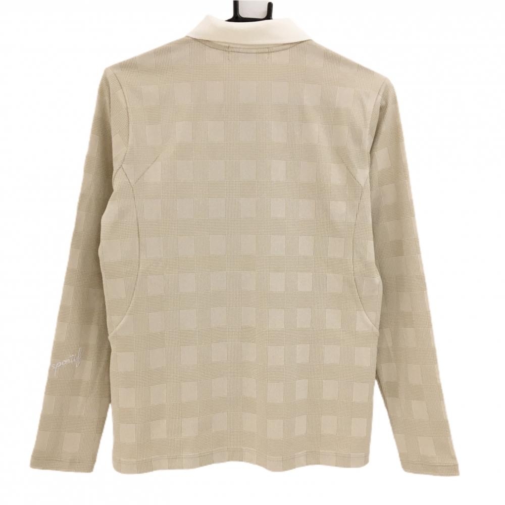【超美品】ルコックゴルフ 長袖ポロシャツ ベージュ グレンチェック風 ロゴ白 レディース L ゴルフウェア 2024年モデル le coq sportif