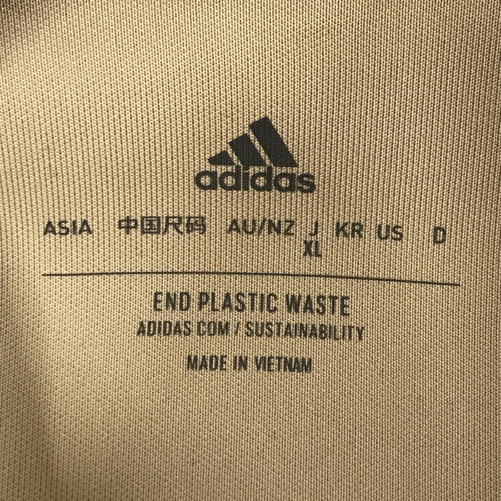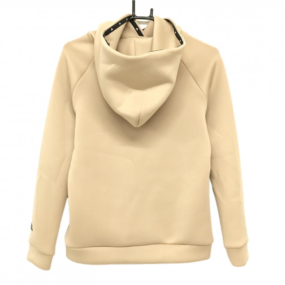 【美品】アディダス パーカー ベージュ ダンボールニット フロントロゴ レディース XL ゴルフウェア adidas