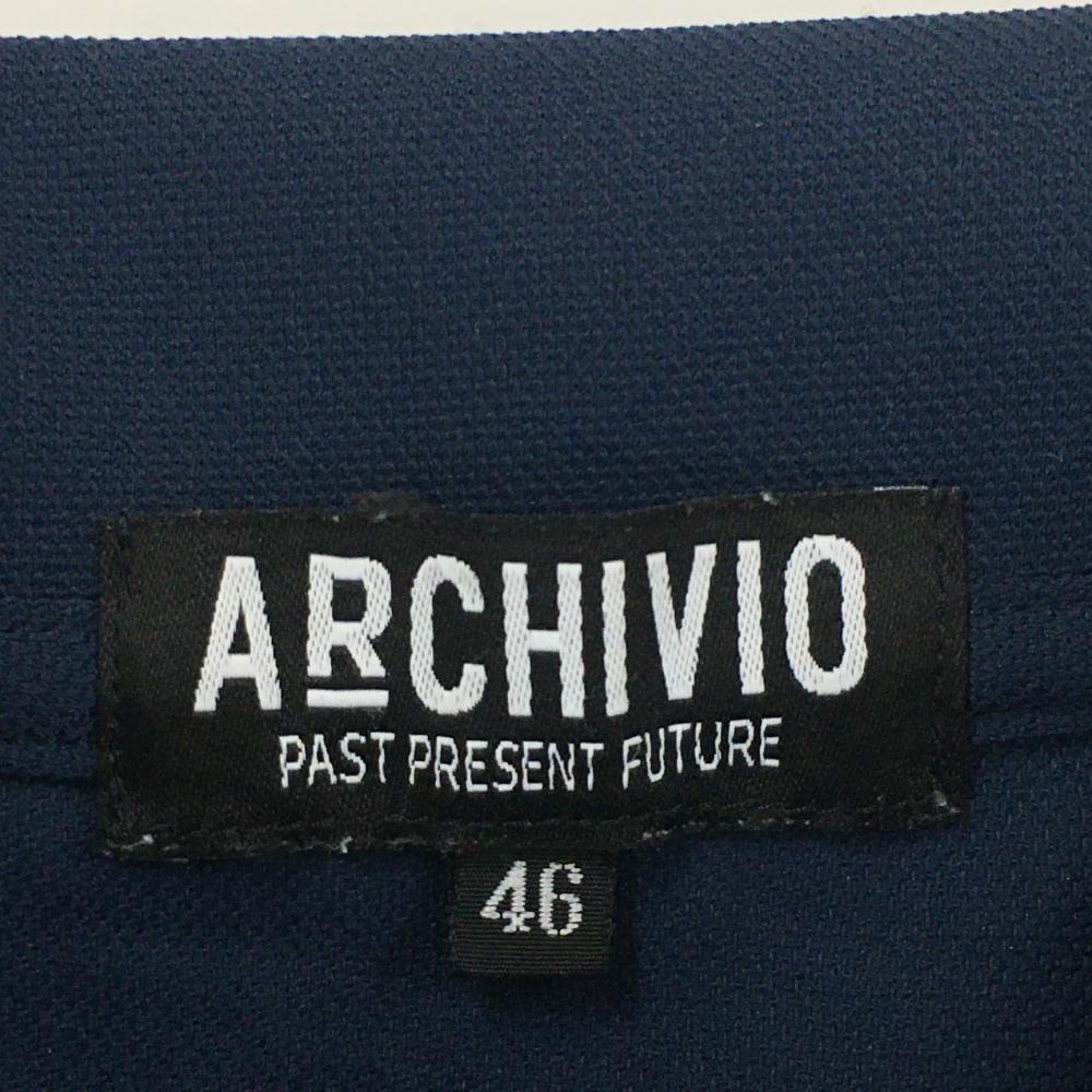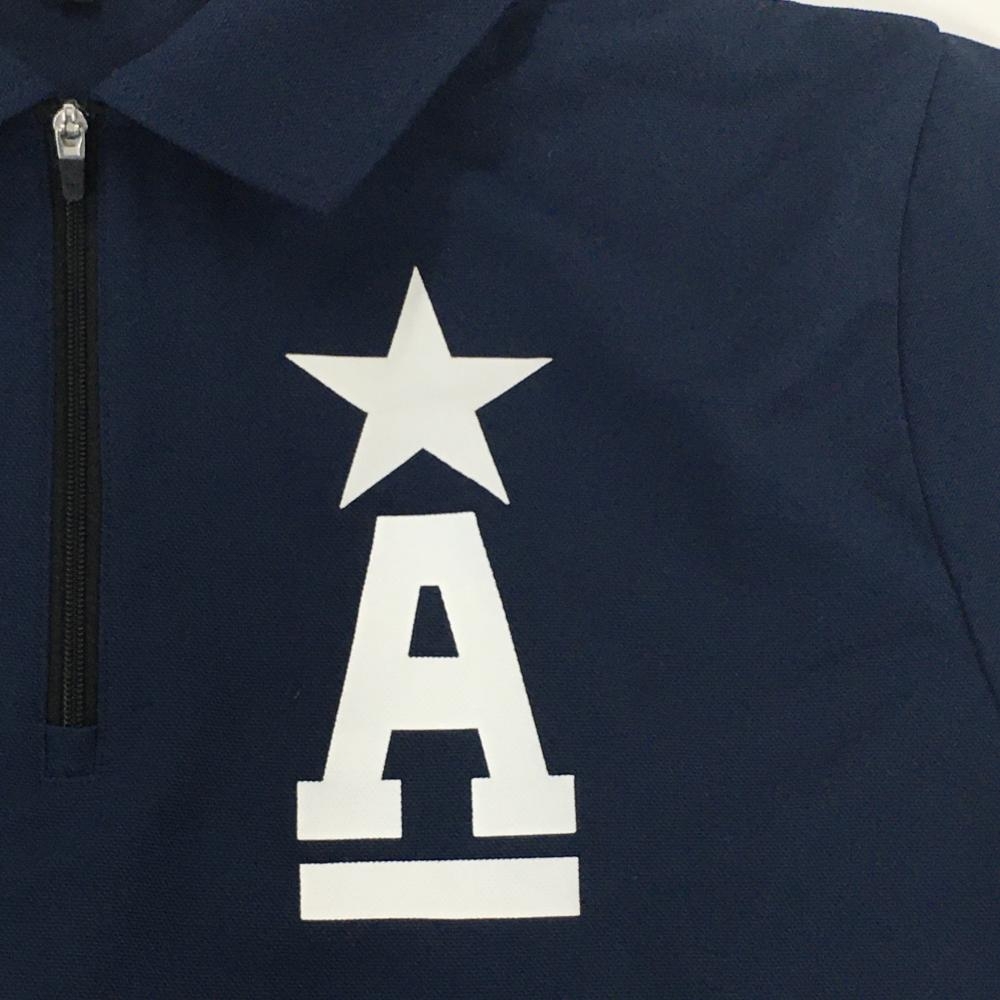 【超美品】アルチビオ 半袖ポロシャツ ネイビー×白 ハーフジップ 裾リブ 星プリント メンズ 46(M) ゴルフウェア archivio