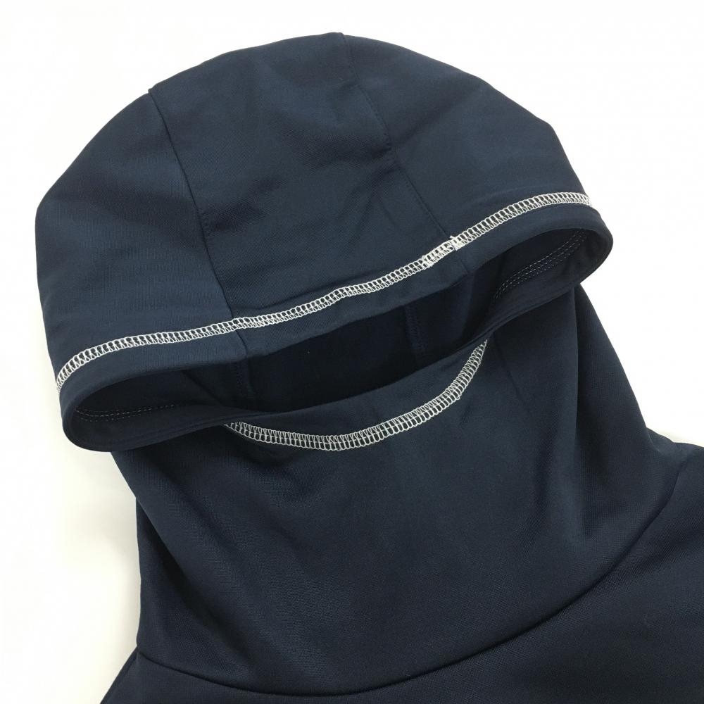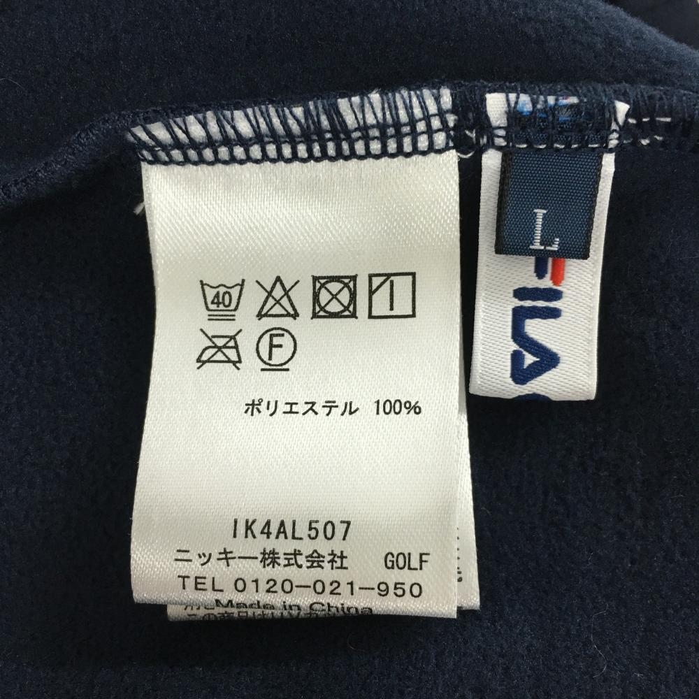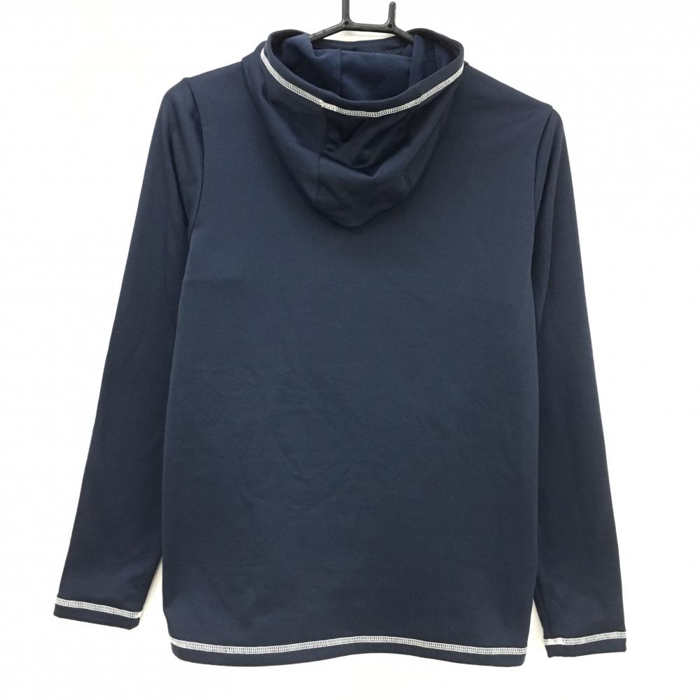 【超美品】フィラゴルフ フード付き長袖ハイネックシャツ ネイビー×白 裏起毛 ロゴ刺しゅう レディース L ゴルフウェア FILA GOLF