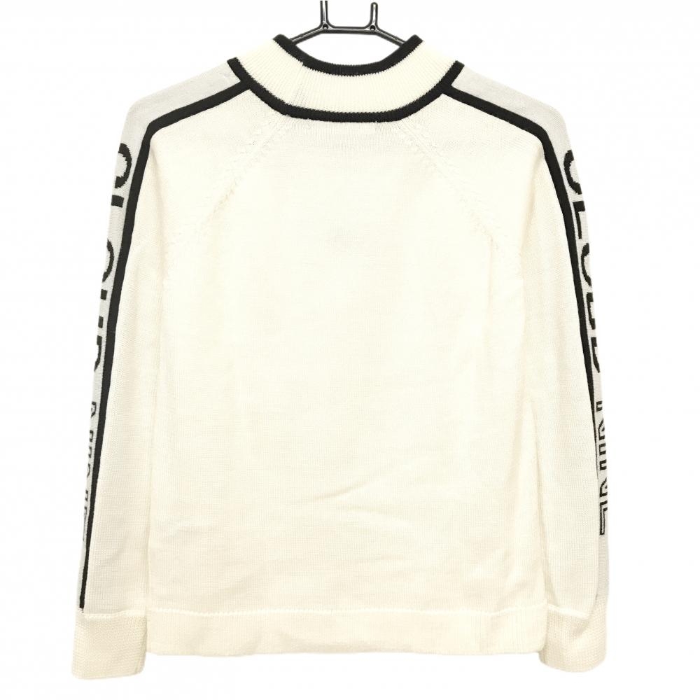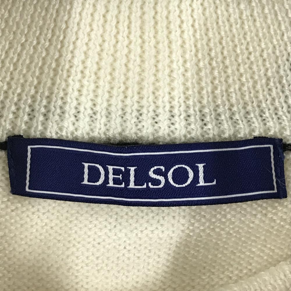 【美品】デルソル ハイネックセーター アイボリー×黒 ニット ウール混 レディース L ゴルフウェア DELSOL