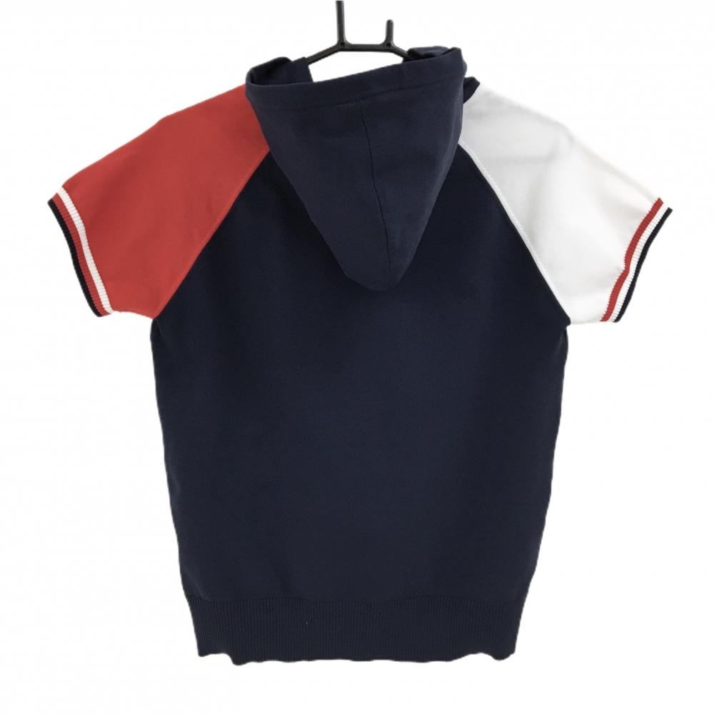 【超美品】ルコックゴルフ フード付き半袖セーター ネイビー×レッド レディース L ゴルフウェア le coq sportif