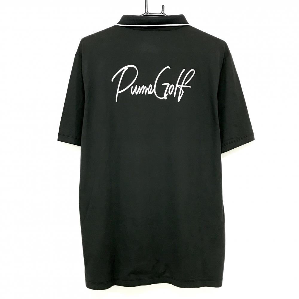 【超美品】プーマ 半袖ポロシャツ 黒×白 襟裏ボーダー ロゴ メンズ XXL ゴルフウェア 大きいサイズ PUMA