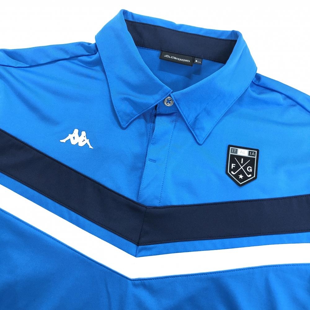 【超美品】カッパ 半袖ポロシャツ ブルー 胸ライン ワッペン メンズ L ゴルフウェア Kappa
