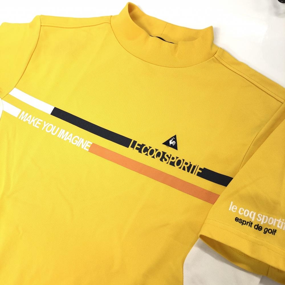 ルコックゴルフ 半袖ハイネックシャツ イエロー×白 胸元ライン メンズ M ゴルフウェア le coq sportif