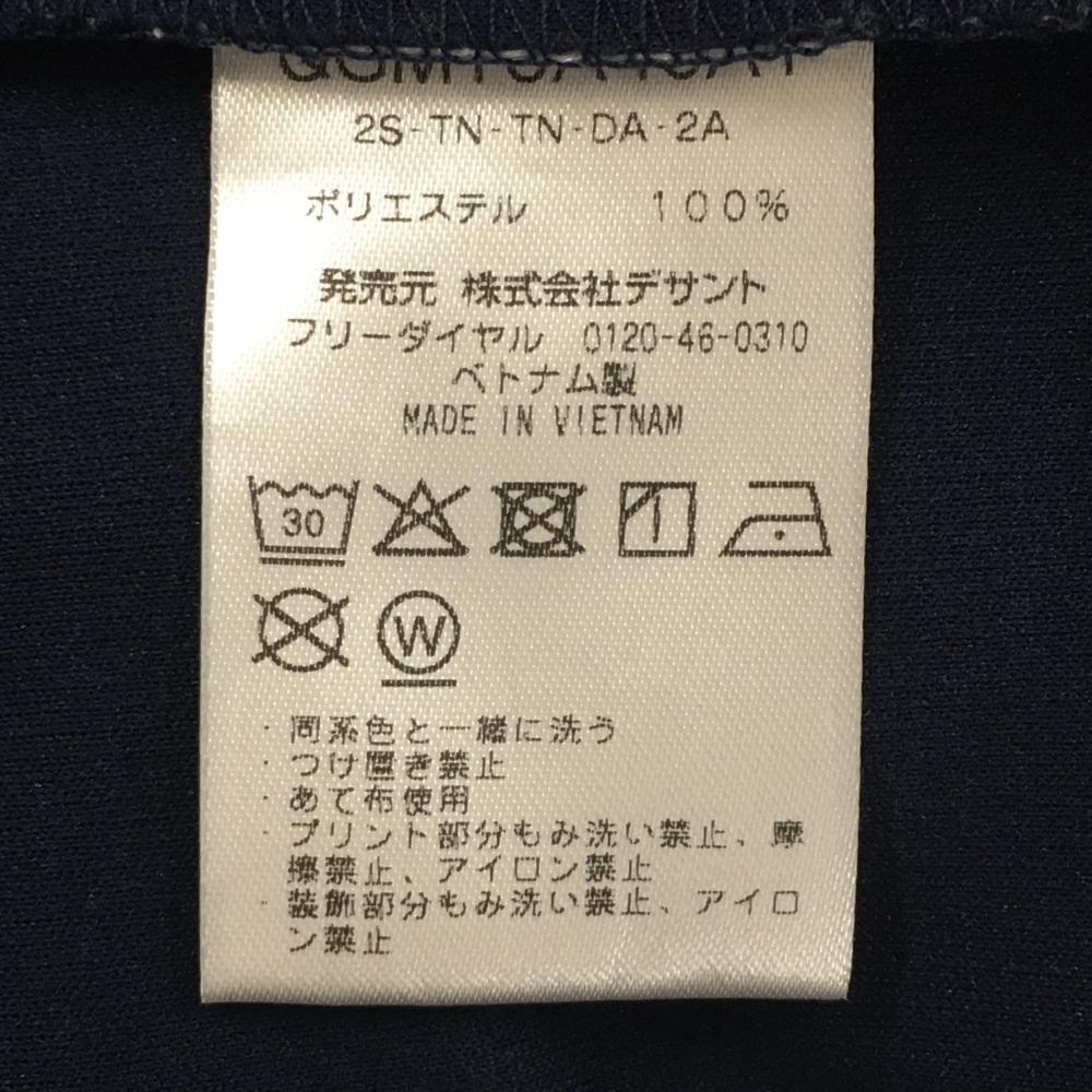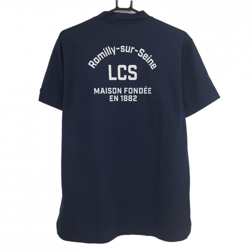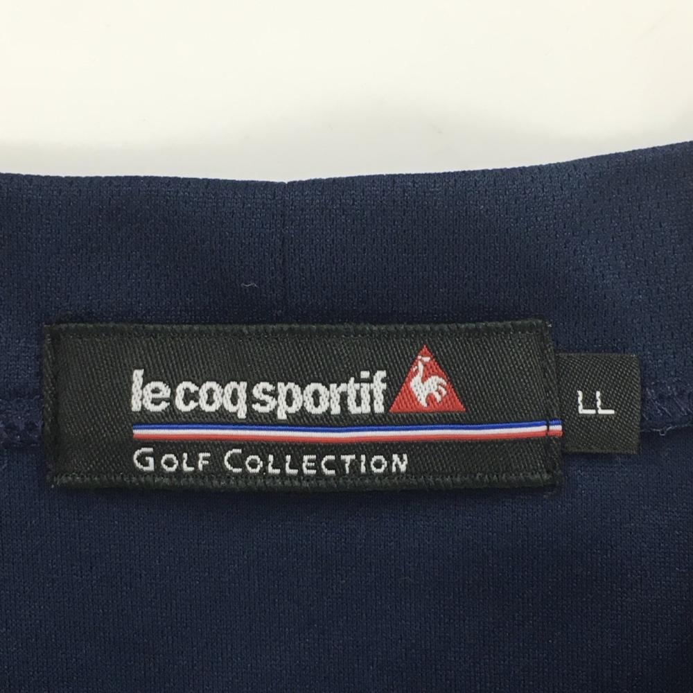 【美品】ルコックゴルフ 半袖ハイネックシャツ ネイビー ロゴ刺しゅう 袖シリコンワッペン メンズ LL ゴルフウェア le coq sportif