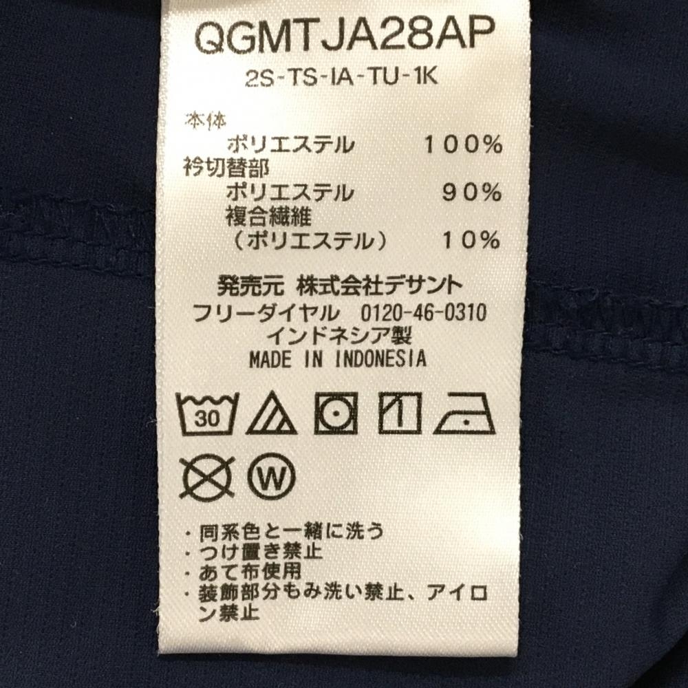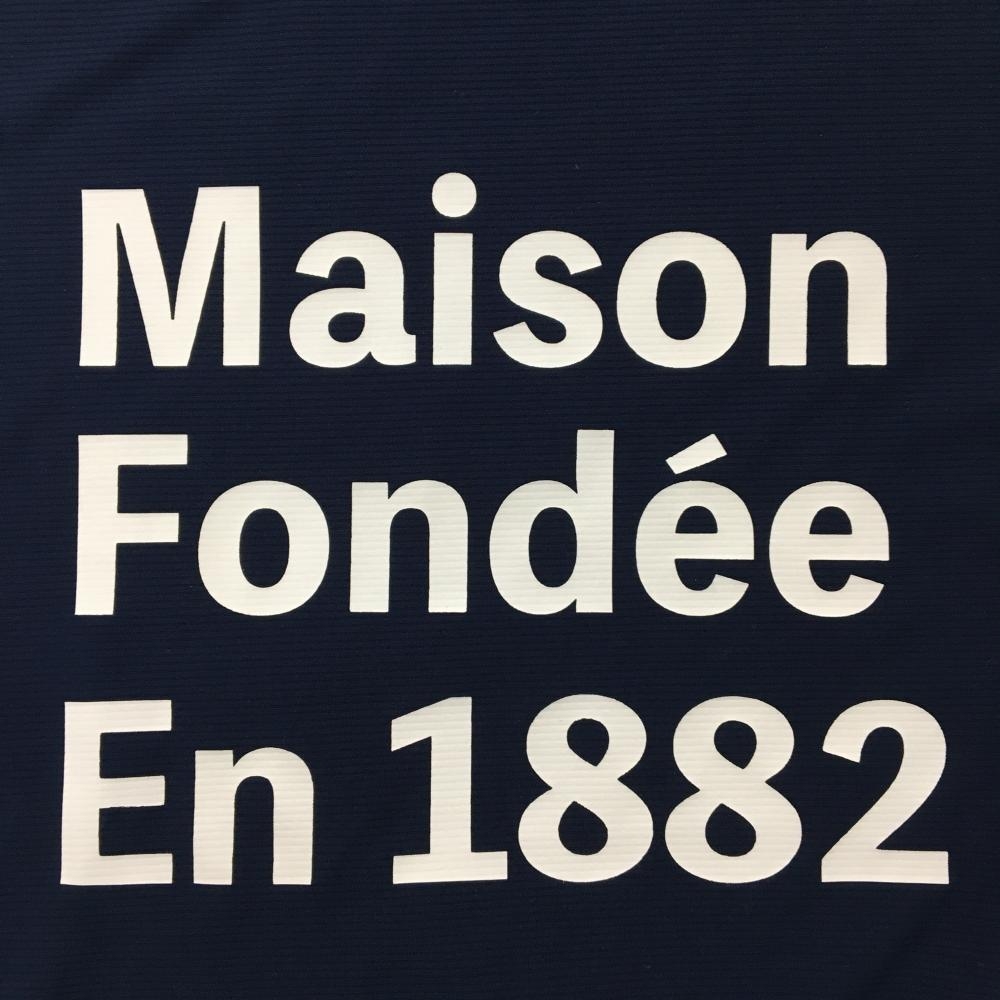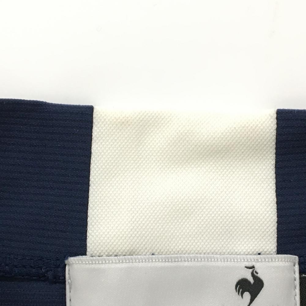 【美品】ルコックゴルフ 半袖ハイネックシャツ ネイビー×白 フロント英字 メンズ LL ゴルフウェア le coq sportif