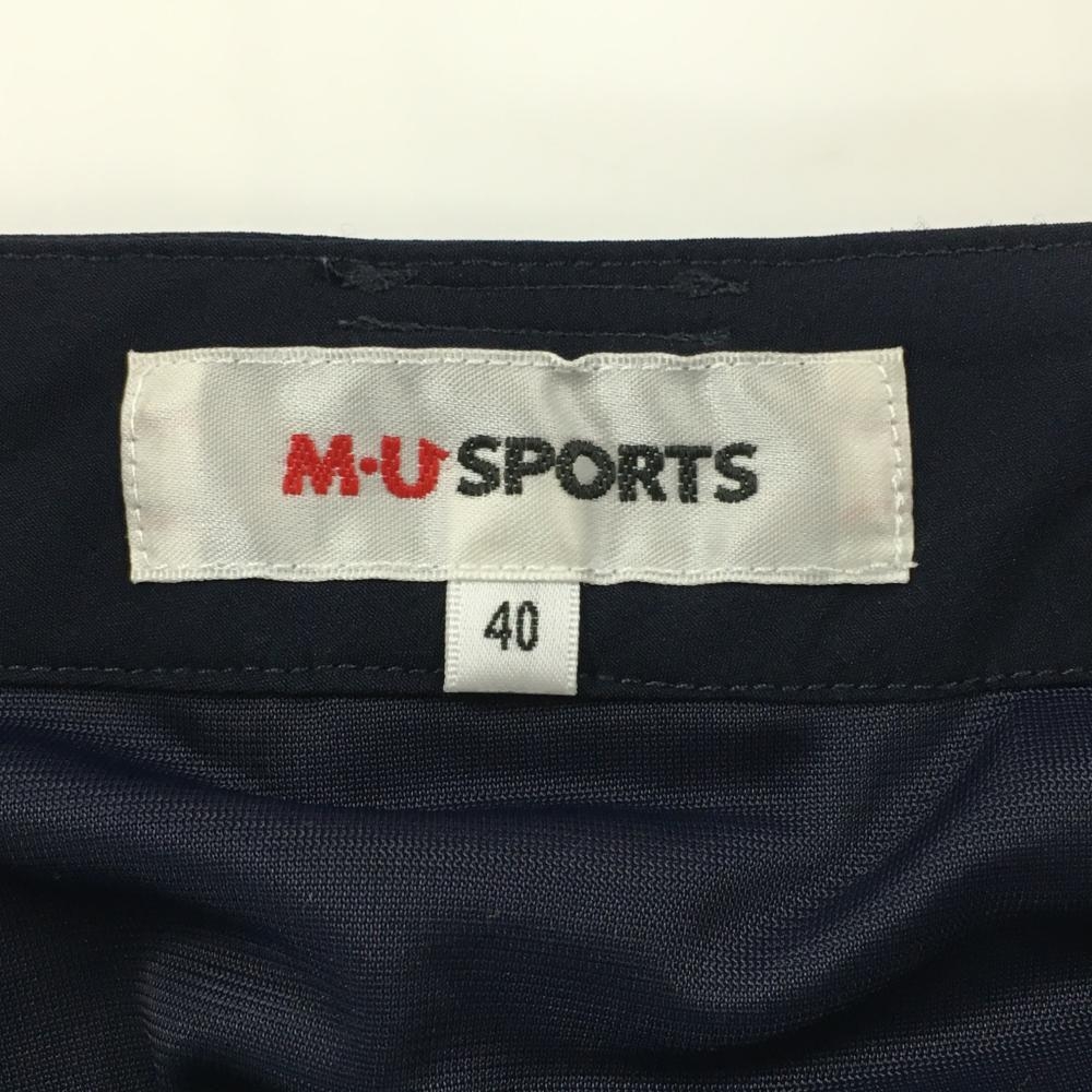 【超美品】MUスポーツ ナイロンスカート ネイビー×白 裏地付き 一部プリーツ レディース 40(M) ゴルフウェア M・U SPORTS