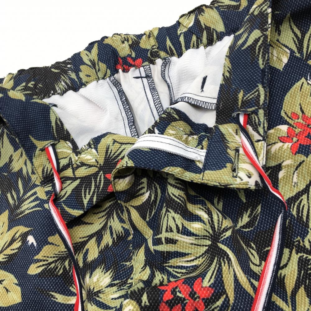 【超美品】アドミラル ハーフパンツ ネイビー×ベージュ リーフ柄 ストレッチ メンズ M ゴルフウェア Admiral