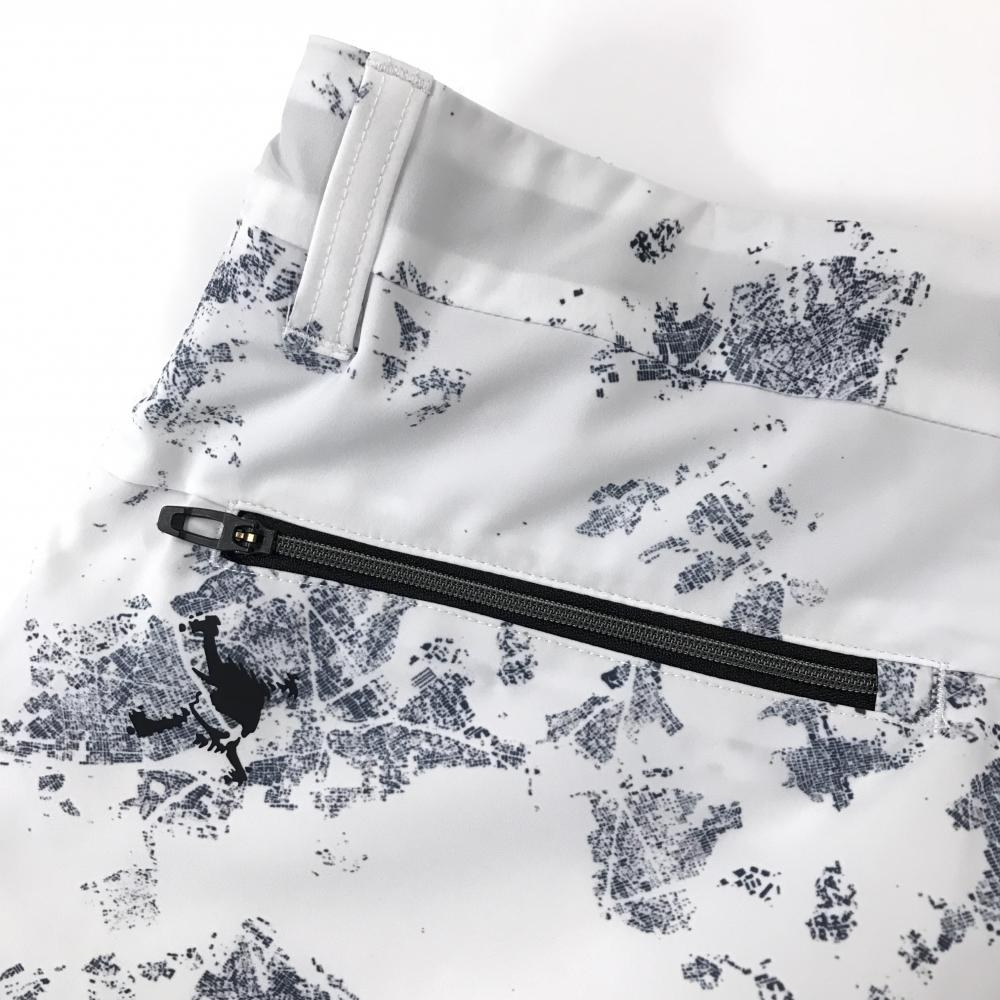 【美品】オークリー パンツ 白×ネイビー 総柄 ストッチ ロゴプリント レディース XL ゴルフウェア Oakley