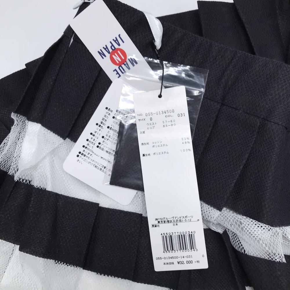 【新品】パーリーゲイツ プリーツスカート ネイビー×白 ボーダー レース 裏地付き 膝下丈 レディース 0(S) ゴルフウェア PEARLY GATES