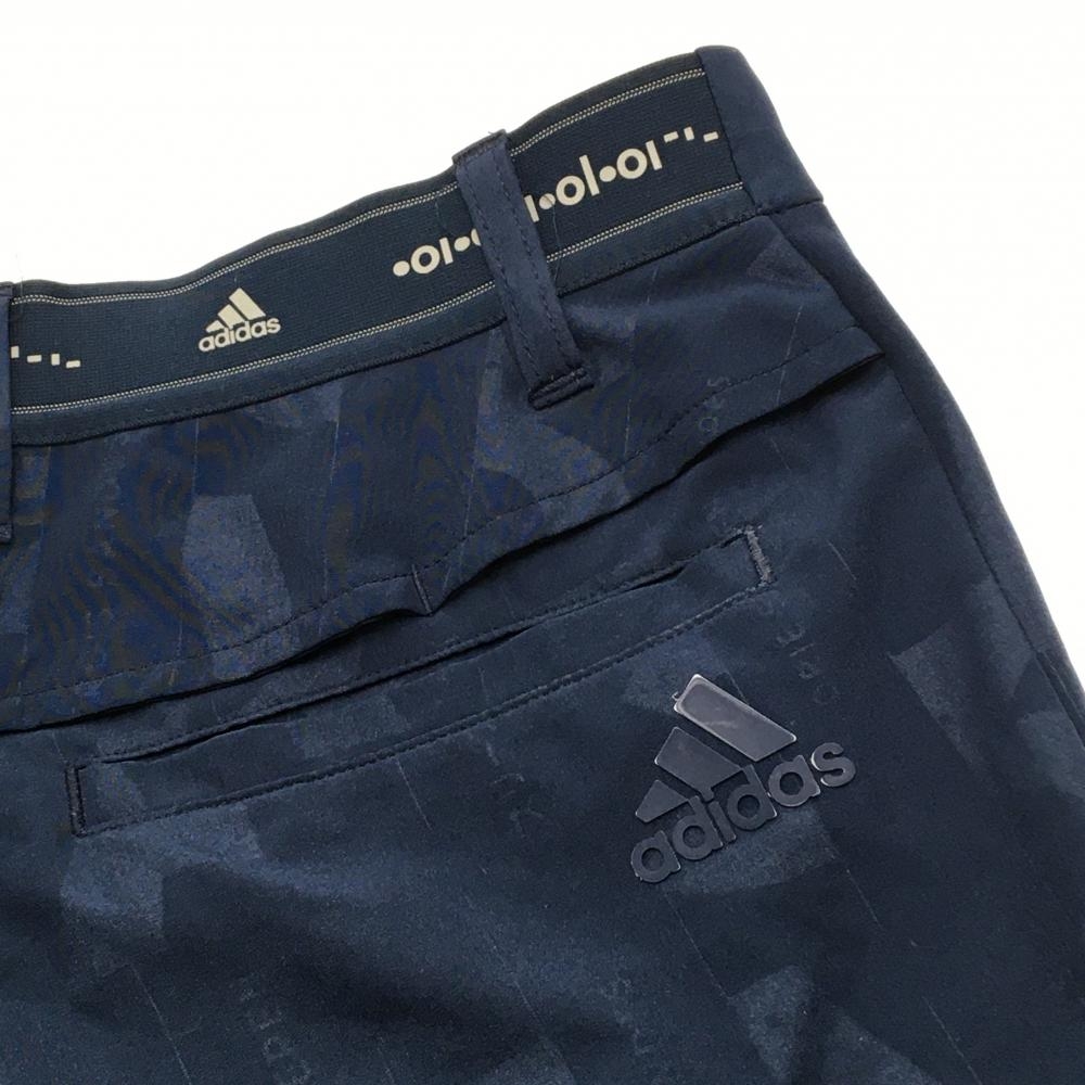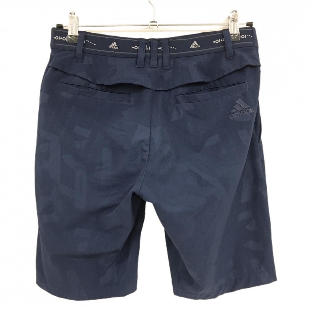 【超美品】アディダス ハーフパンツ ネイビー 地模様 ウエスト後ろゴム バック立体ロゴ メンズ S ゴルフウェア adidas