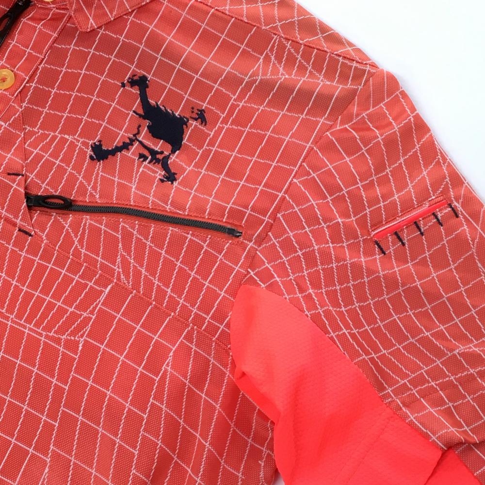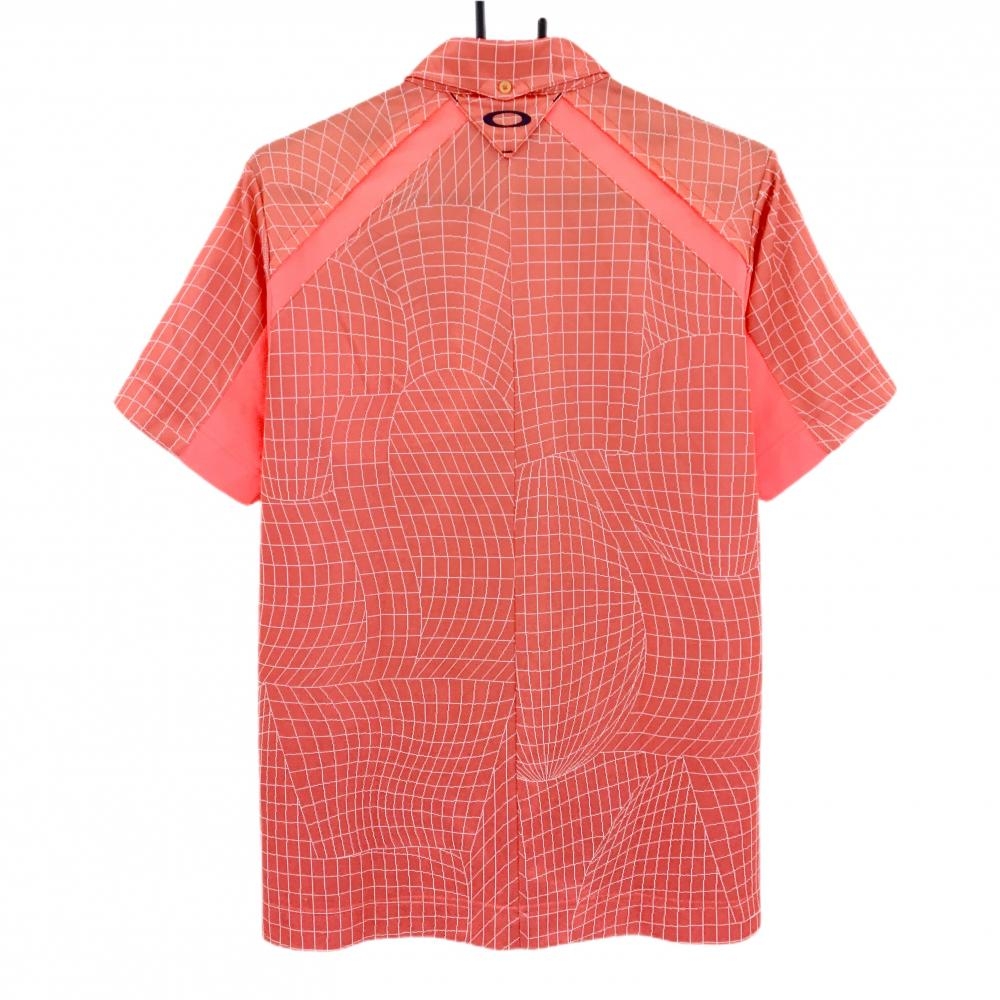 オークリー 半袖ポロシャツ オレンジ×白 総柄 ハーフジップ ボタンダウン ティー装着可 メンズ L ゴルフウェア Oakley