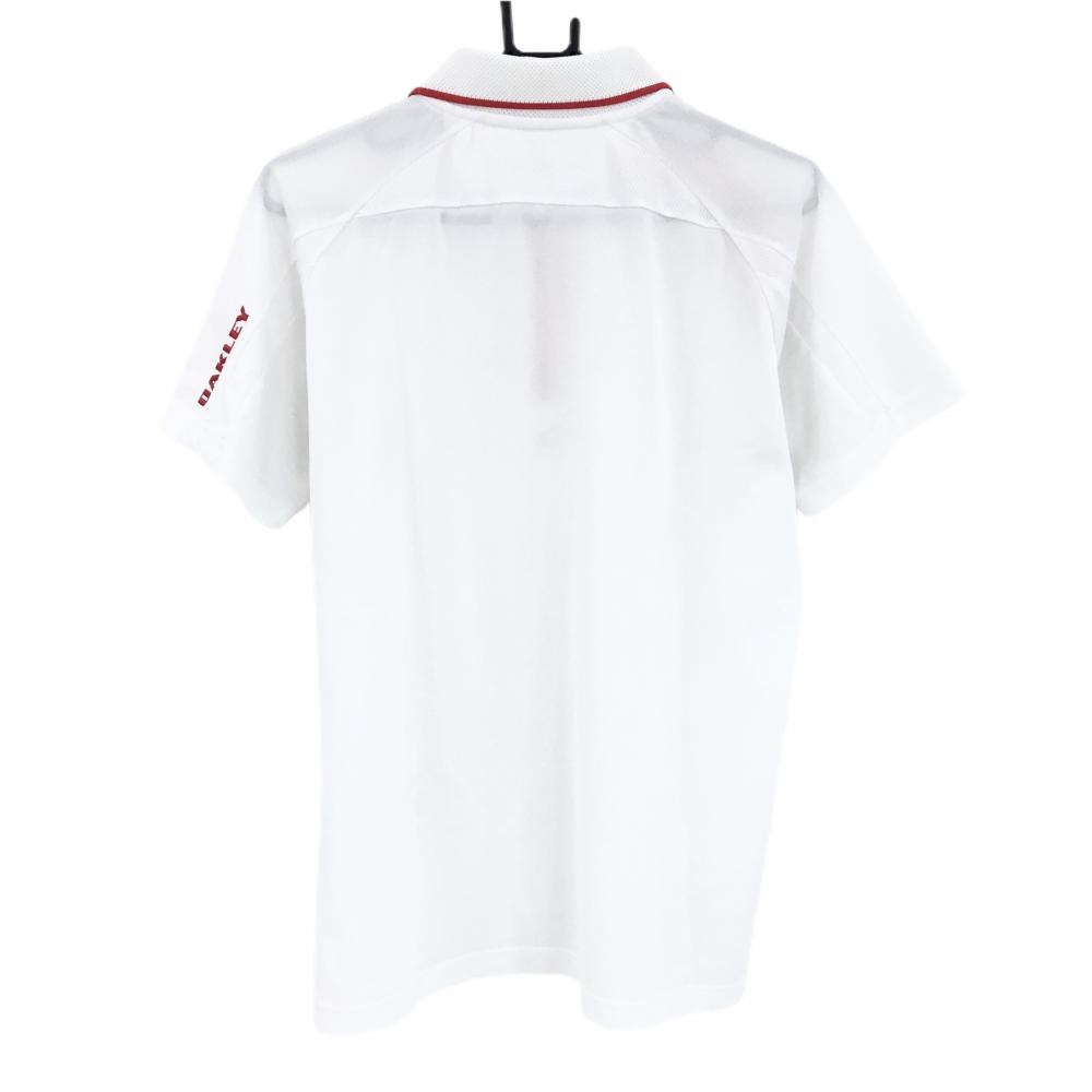 オークリー 半袖ポロシャツ 白×レッド 一部メッシュ ロゴ刺しゅう メンズ M ゴルフウェア Oakley
