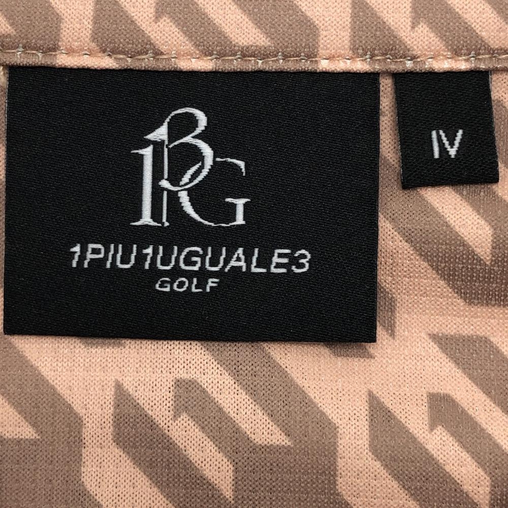 【超美品】ウノピゥウノウグァーレトレゴルフ 半袖ポロシャツ ピンクベージュ×グレージュ 総柄 メンズ IV(M) ゴルフウェア 1PIU1UGUALE3