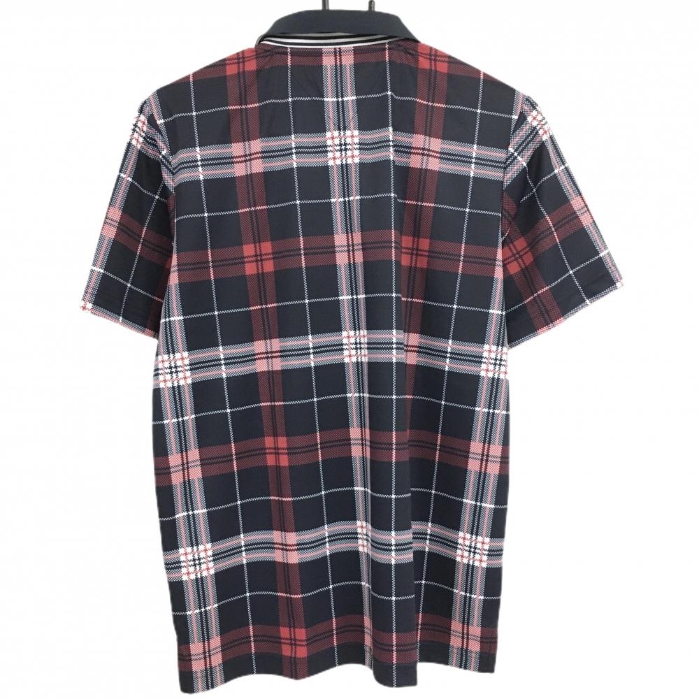 【超美品】トミーヒルフィガーゴルフ 半袖ポロシャツ 黒×レッド×白 チェック 襟裏ボーダー メンズ M ゴルフウェア Tommy Hilfiger Golf