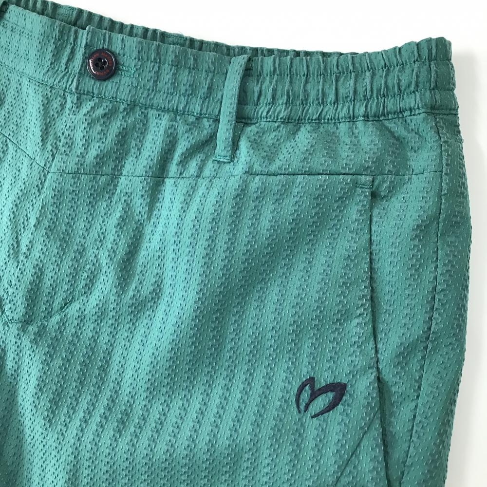 【美品】マスターバニー ハーフパンツ グリーン ストライプ織生地 ストレッチ メンズ 5(L) ゴルフウェア MASTER BUNNY EDITION