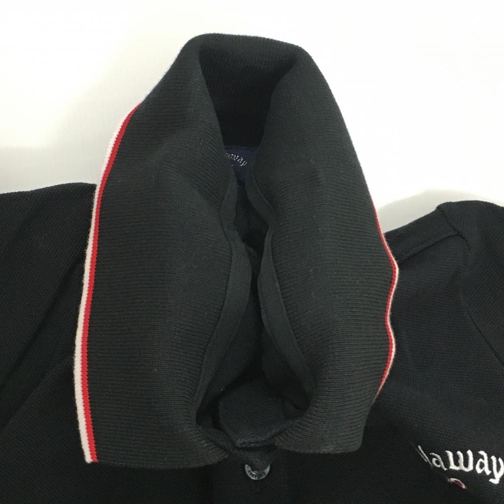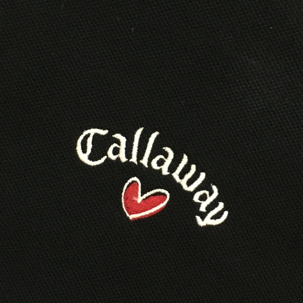 キャロウェイ 半袖ポロシャツ 黒×レッド×白 襟縁ライン ハート刺しゅう レディース LL ゴルフウェア Callaway