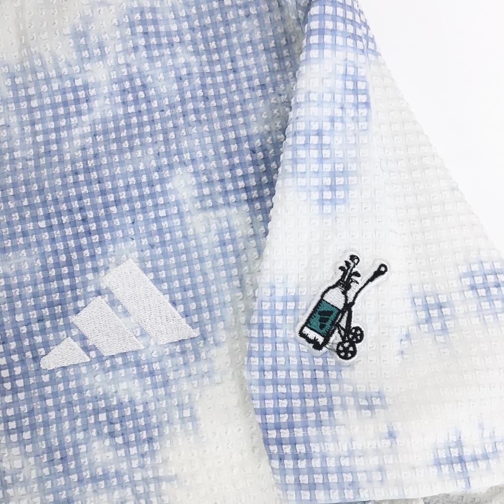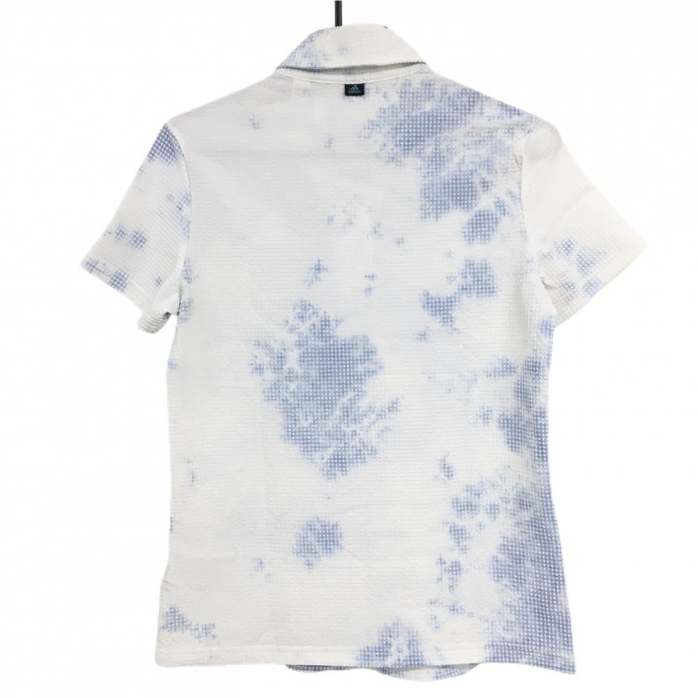 【超美品】アディダス 半袖ポロシャツ 白×ライトブルー スクエアドット調 凸凹生地 袖ワッペン レディース OT ゴルフウェア adidas