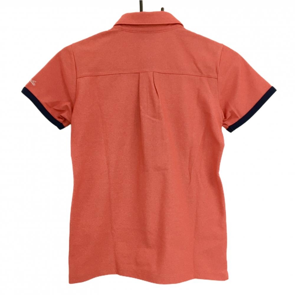 【超美品】カッパ 半袖ポロシャツ 杢レッド×ネイビー 胸ポケット ロゴスタッズ 袖刺しゅう レディース M ゴルフウェア Kappa