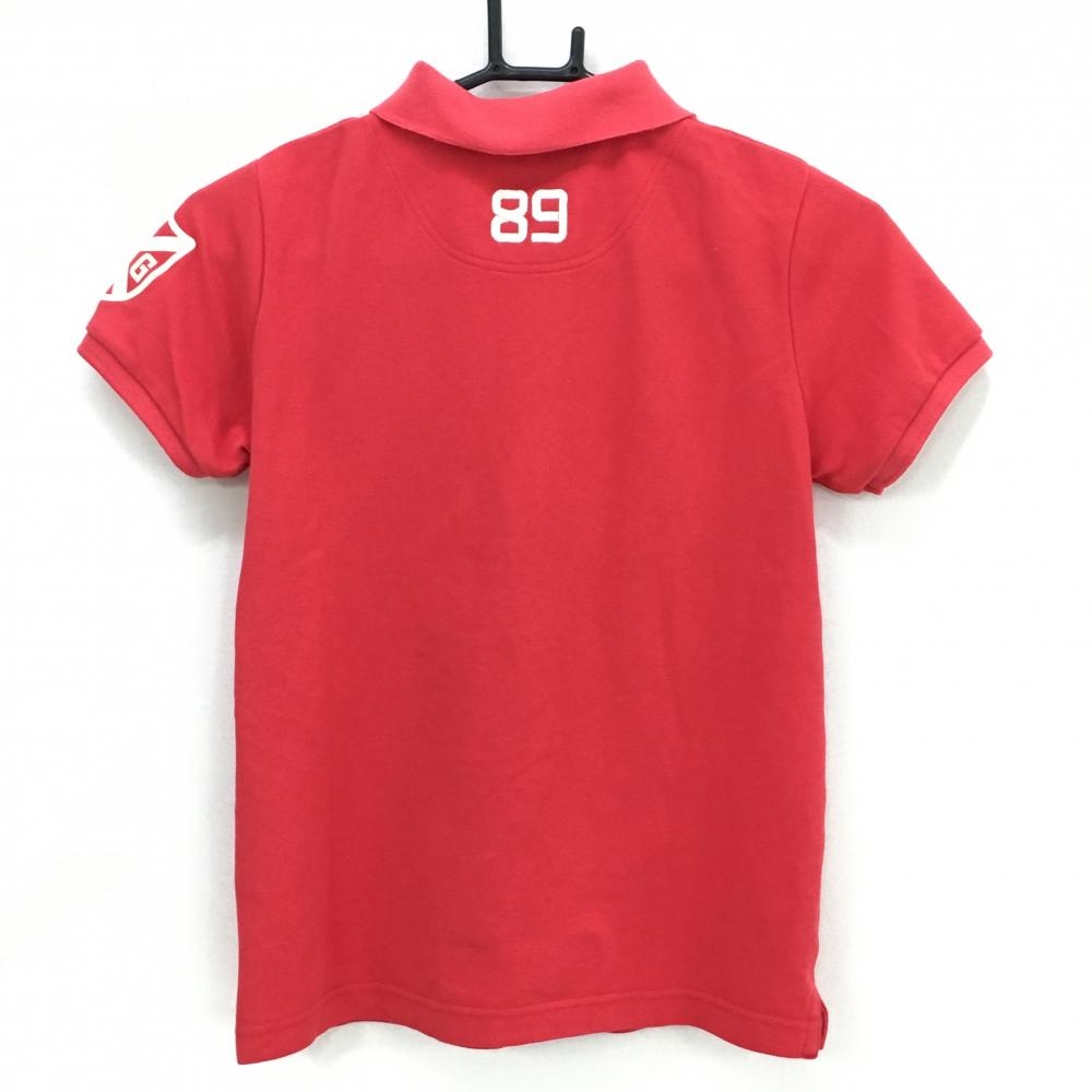 【美品】パーリーゲイツ 半袖ポロシャツ ピンクレッド×ライトベージュ系 ロゴプリント レディース 0(S) ゴルフウェア PEARLY GATES