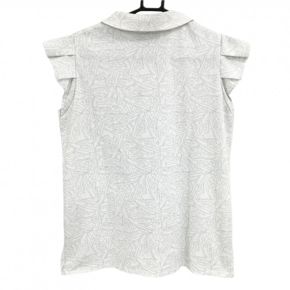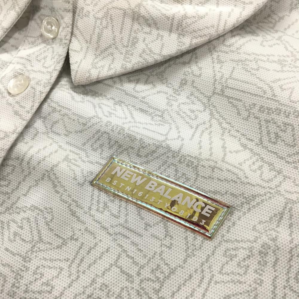 ニューバランスゴルフ 半袖ポロシャツ 白×グレー スニーカー総柄 袖フリル レディース 1(M) ゴルフウェア New Balance