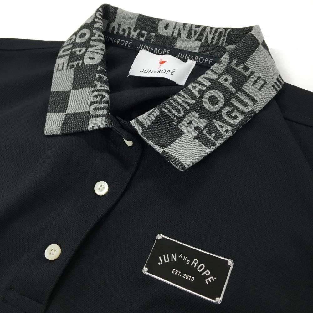 【超美品】ジュンアンドロペ 半袖ポロシャツ 黒×グレー 襟柄 バックプリント レディース S ゴルフウェア JUN&ROPE