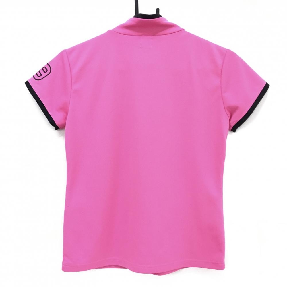 【美品】アルチビオ 襟付き半袖シャツ ピンク×黒 フロントロゴプリント サイドライン レディース 38(M) ゴルフウェア archivio