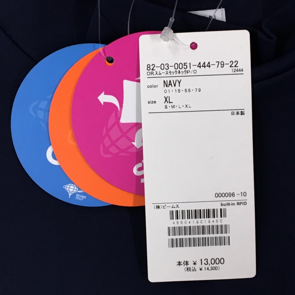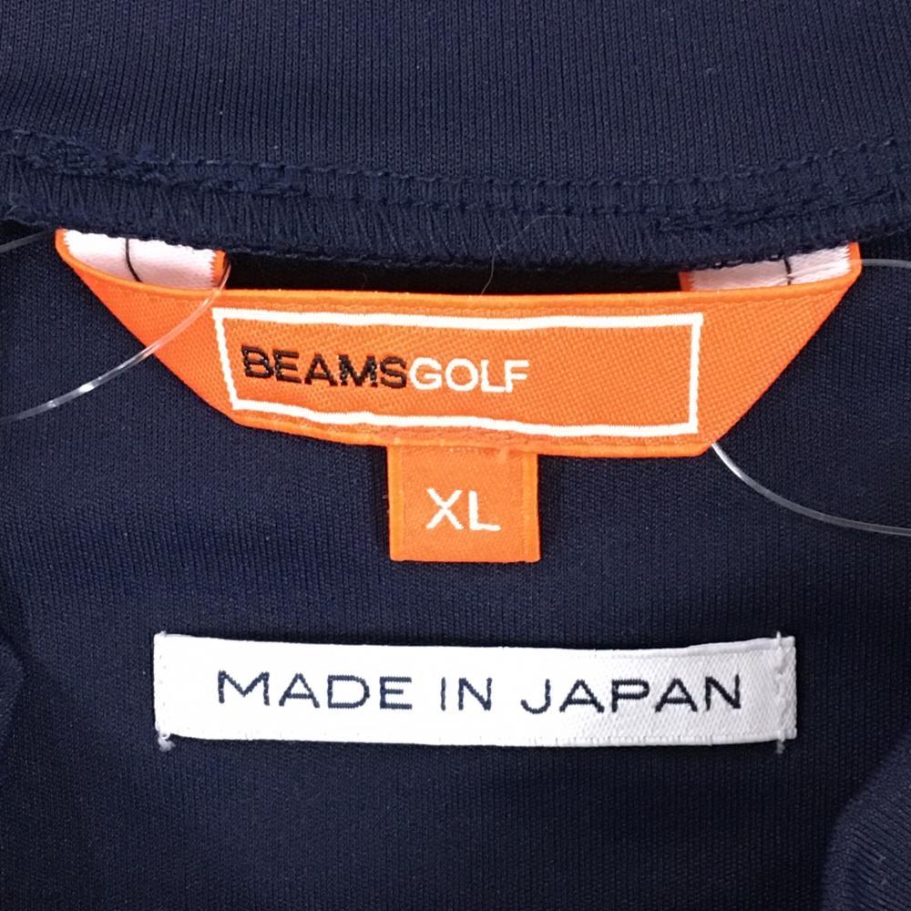 【新品】ビームスゴルフ 半袖ハイネックシャツ ネイビー×白 ロゴ刺しゅう ストレッチ メンズ XL ゴルフウェア BEAMS GOLF