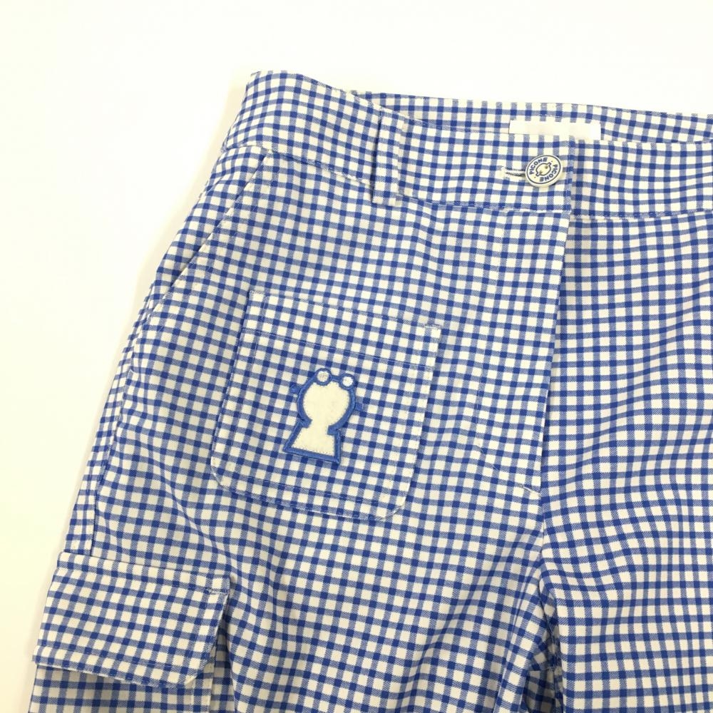 【美品】ピッコーネクラブ パンツ ブルー×白 ギンガムチェック レディース 36(S) ゴルフウェア PICONE