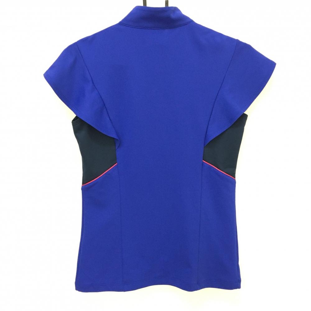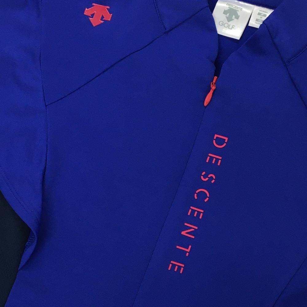 【超美品】デサントゴルフ 半袖ハイネックシャツ ブルー×ネイビー ハーフジップ 中田英寿 レディース M ゴルフウェア DESCENTE