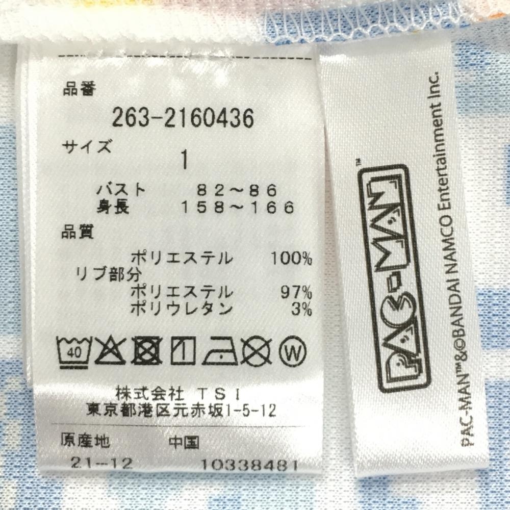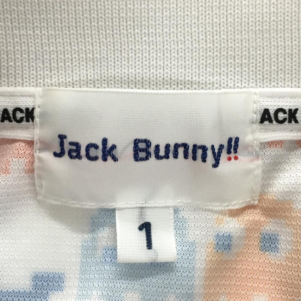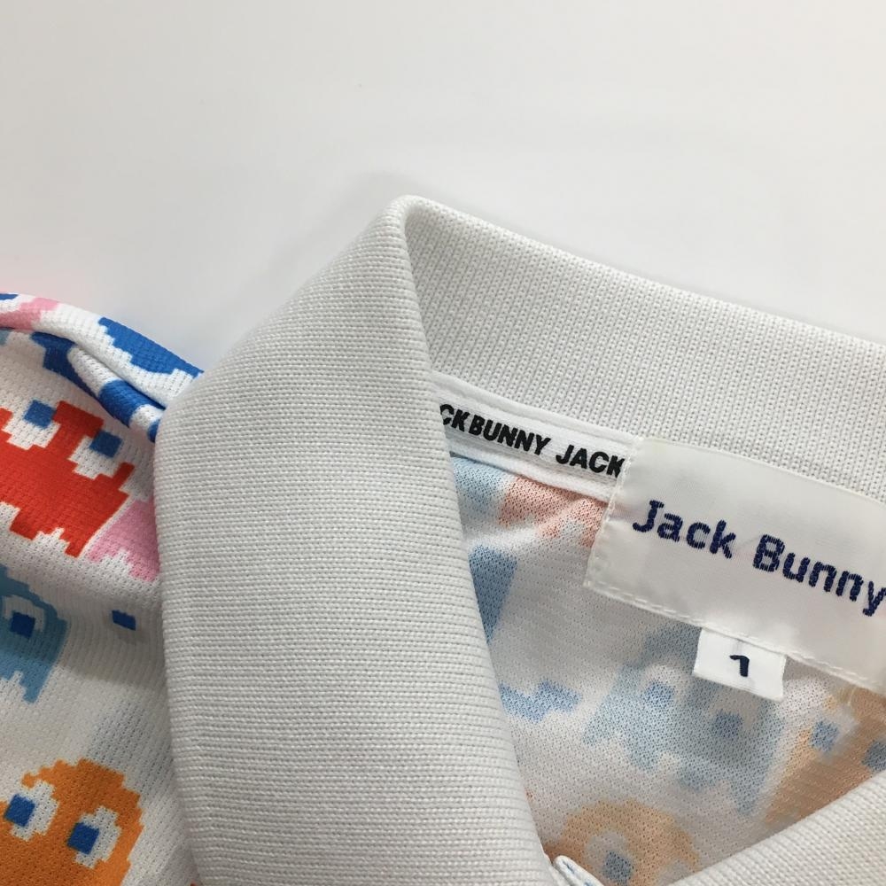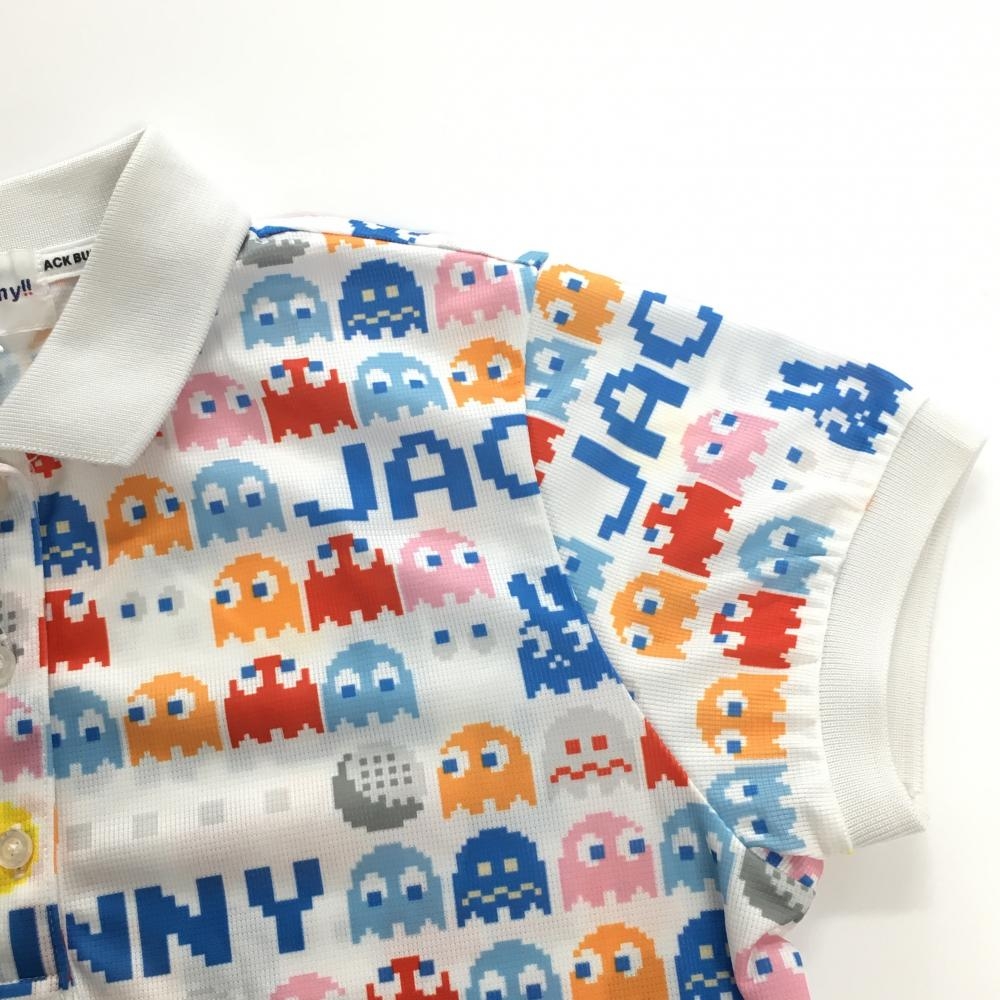 【美品】ジャックバニー×パックマン 半袖ポロシャツ 白×マルチカラー パックマン総柄 レディース 1(M) ゴルフウェア Jack Bunny