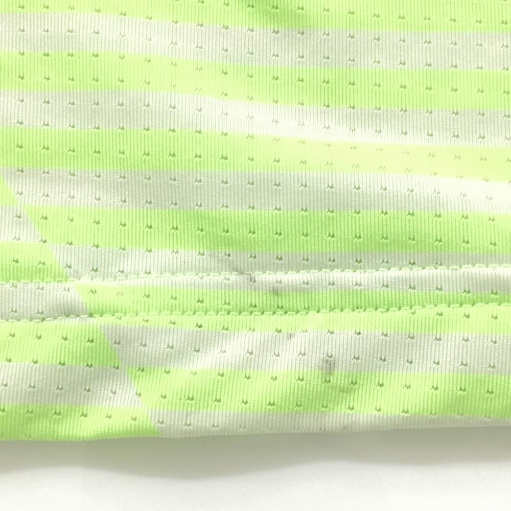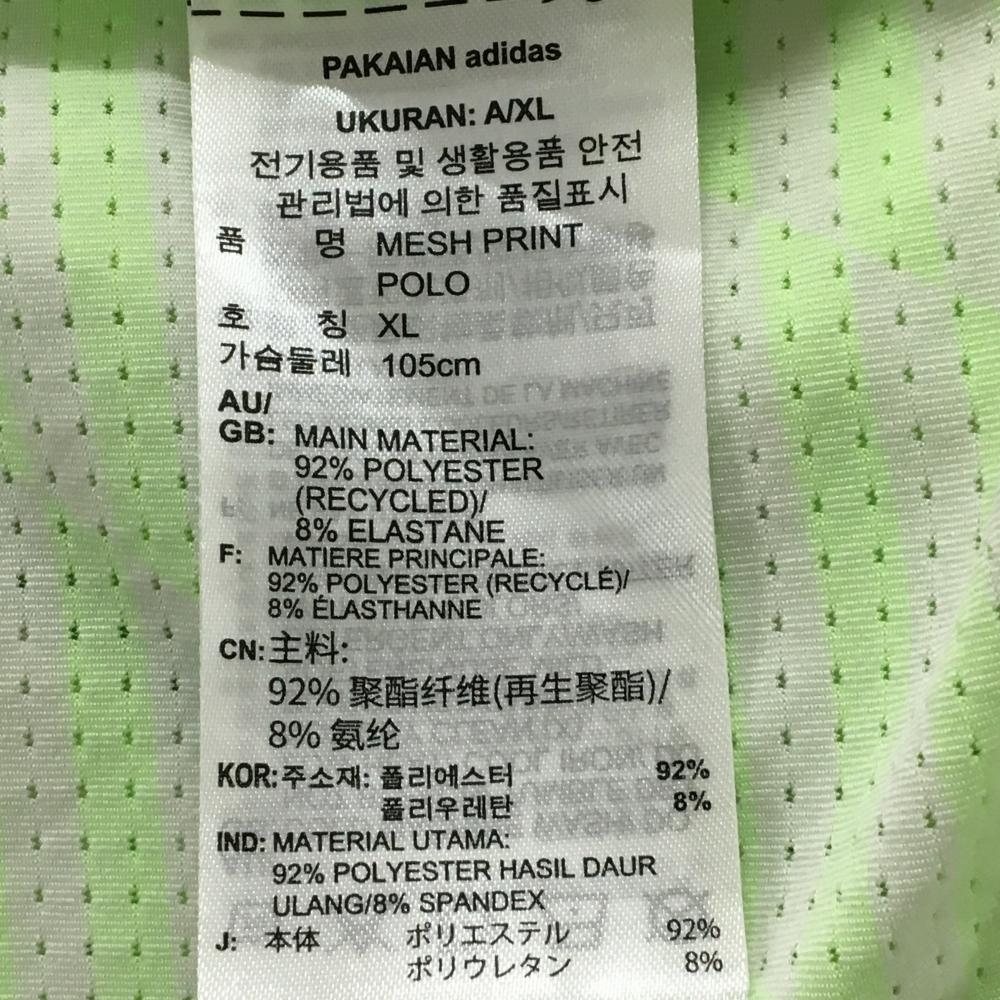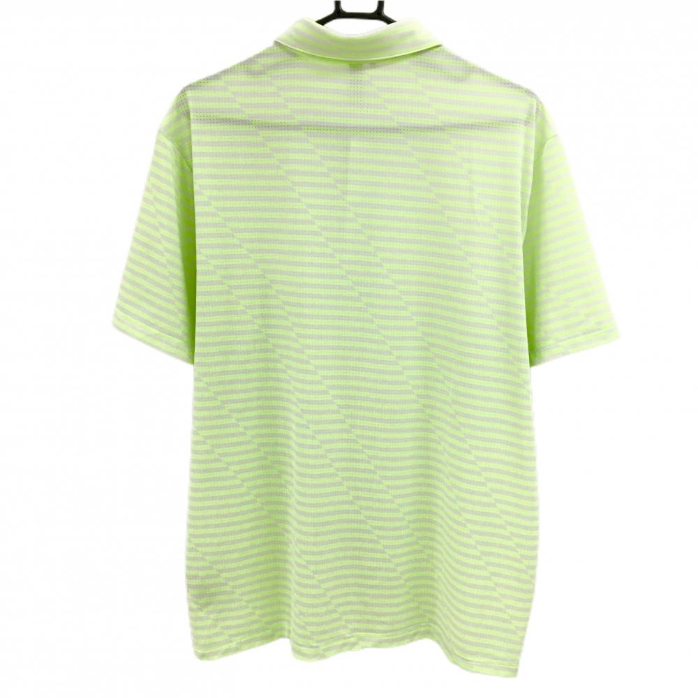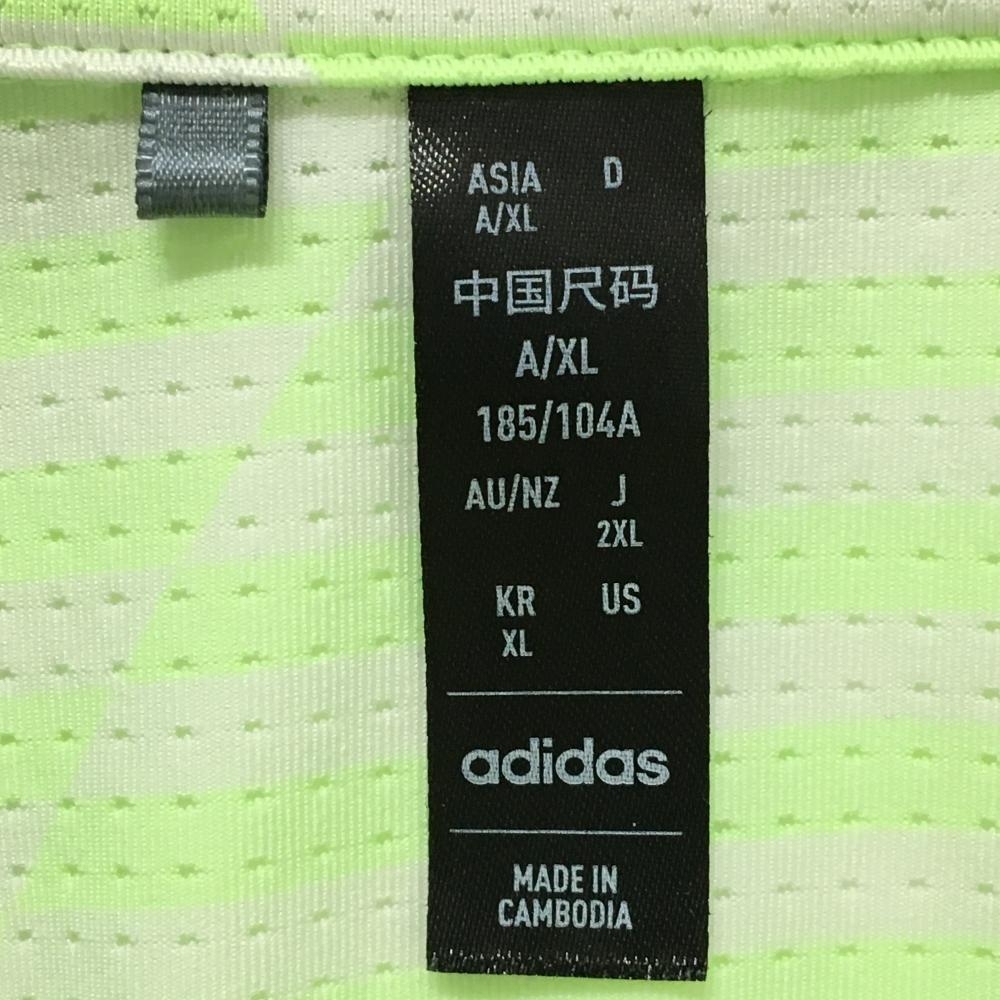 【美品】アディダス 半袖ポロシャツ 白×蛍光グリーン ボーダー風 メッシュ メンズ 2XL ゴルフウェア 大きいサイズ adidas