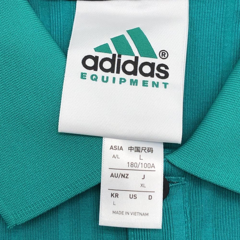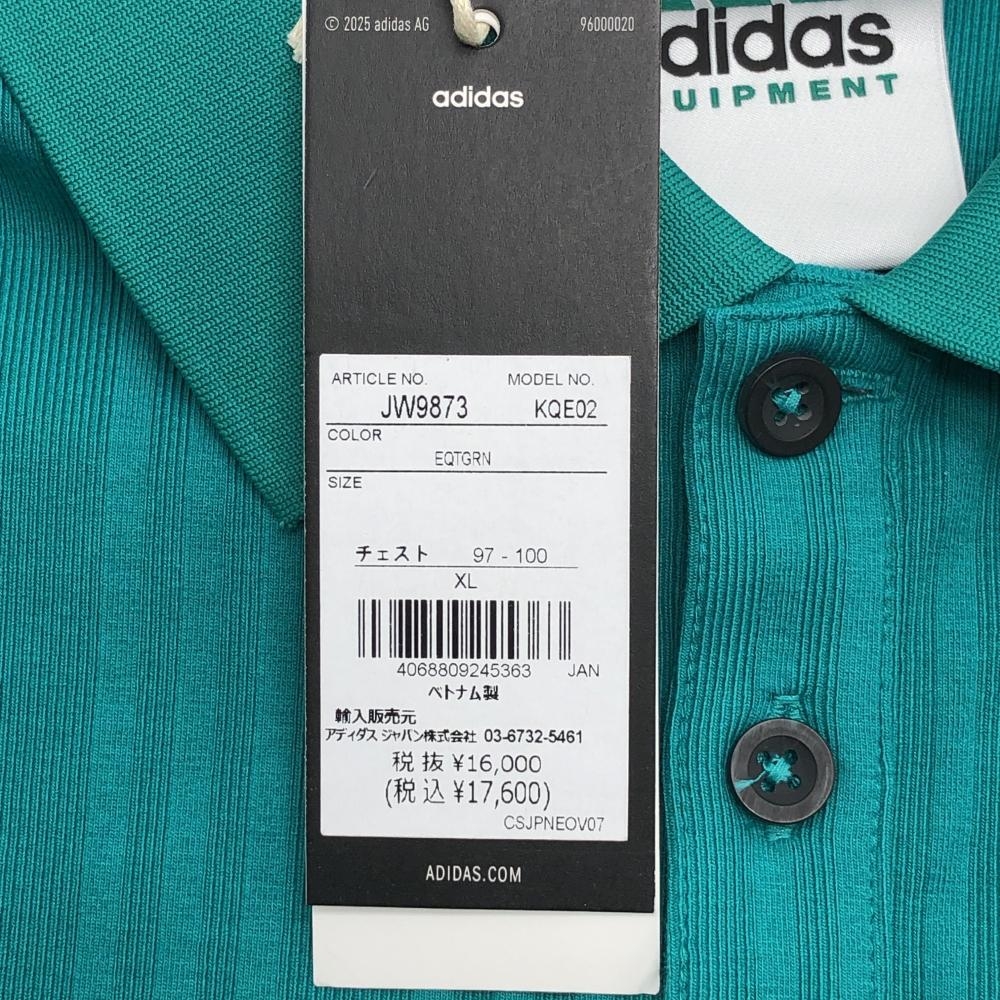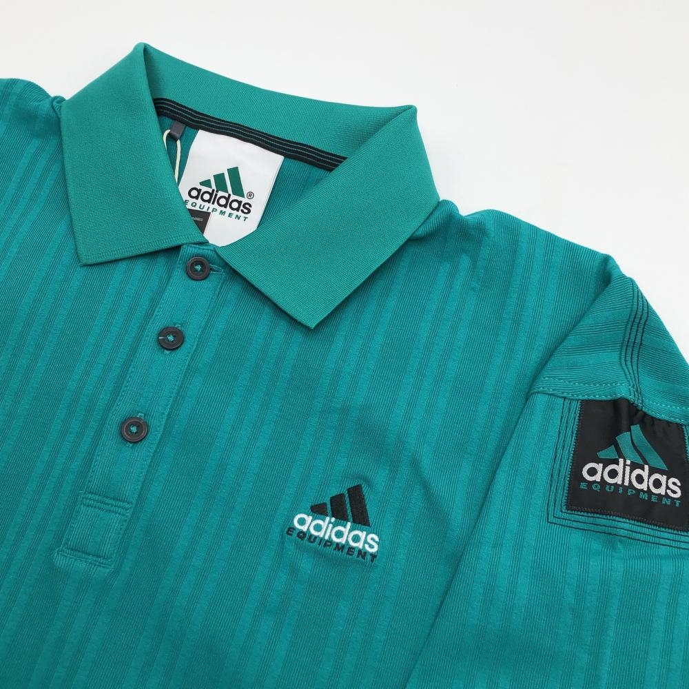 【新品】アディダス 半袖ポロシャツ グリーン エキップメント ストライプ調 胸ロゴ メンズ XL ゴルフウェア 2025年モデル adidas