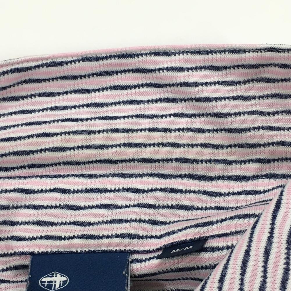 【美品】フィドラ 半袖ポロシャツ ピンク×ネイビー系 ボーダー風 ボタンダウン メンズ M/M ゴルフウェア FIDRA
