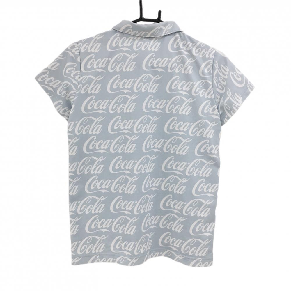 【美品】ジャックバニー×コカ・コーラ 半袖ポロシャツ ライトブルー×白 コカコーラ総柄 レディース 2(L) ゴルフウェア Jack Bunny