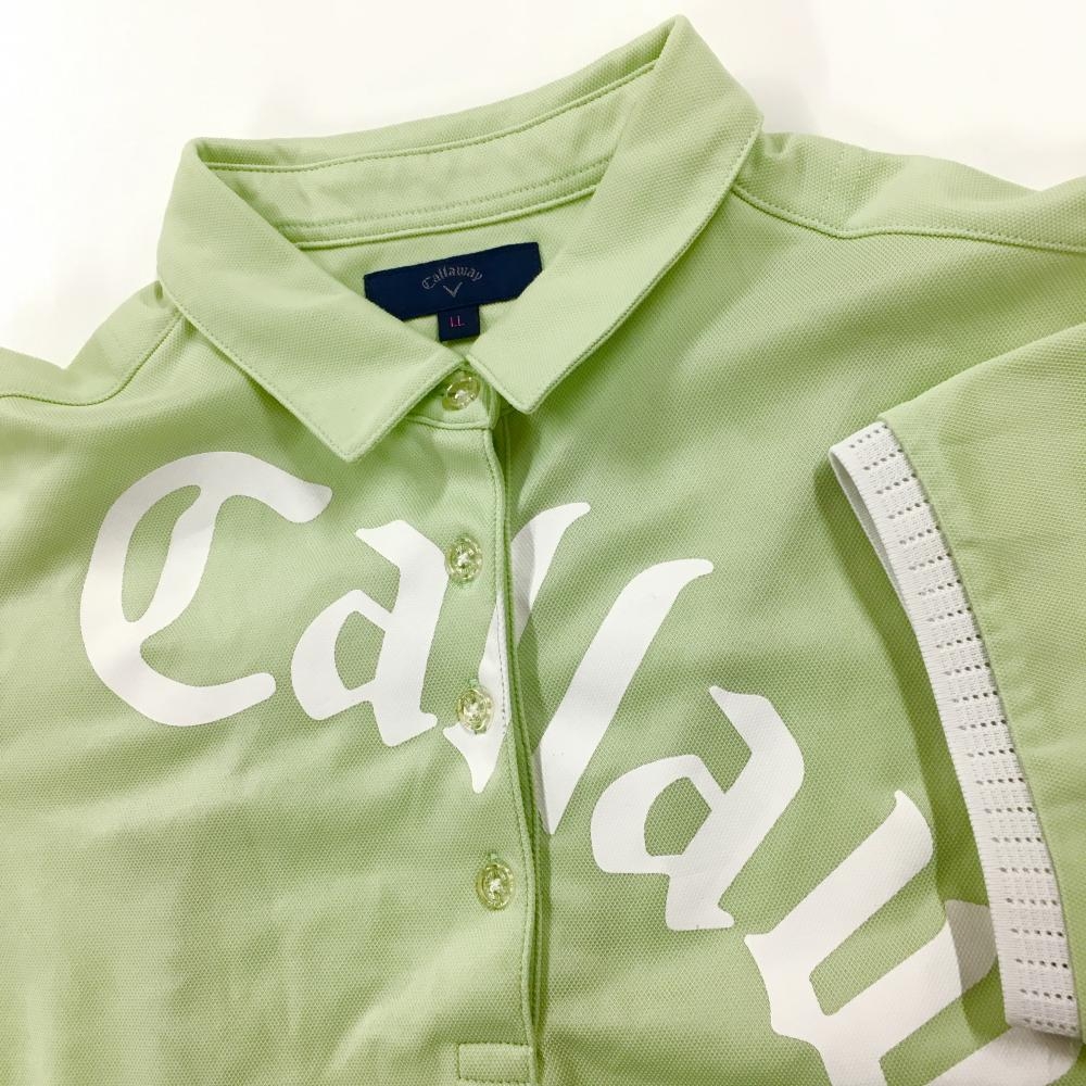 【美品】キャロウェイ 半袖ポロシャツ ライトグリーン×白 ビッグロゴ レディース LL ゴルフウェア Callaway