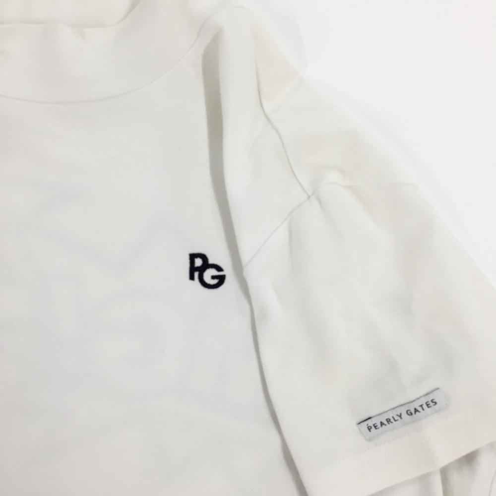 パーリーゲイツ 半袖ハイネックシャツ 白 感電ニコちゃん スマイル バックプリント レディース 1(M) ゴルフウェア PEARLY GATES