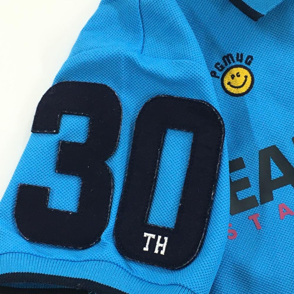 パーリーゲイツ 半袖ポロシャツ ブルー×黒 ニコちゃん スマイル 30周年 レディース 0(S) ゴルフウェア PEARLY GATES