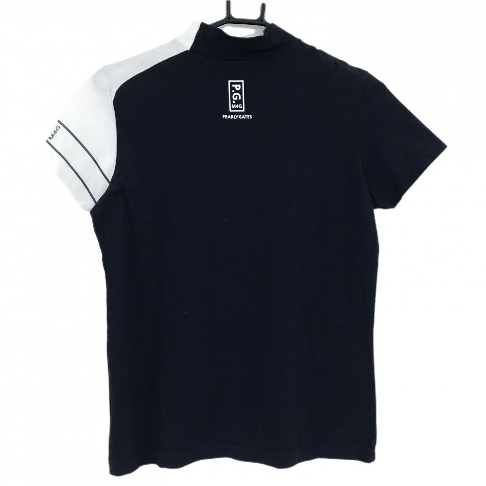 【超美品】パーリーゲイツ 半袖ハイネックシャツ ダークネイビー×白 コットン混 肩ロゴ レディース 1(M) ゴルフウェア PEARLY GATES