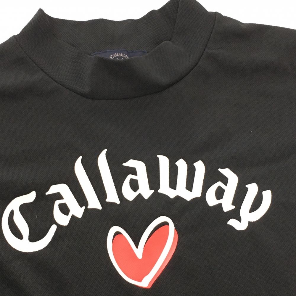 【超美品】キャロウェイ 半袖ハイネックシャツ 黒ロゴプリント ハート レディース L ゴルフウェア Callaway