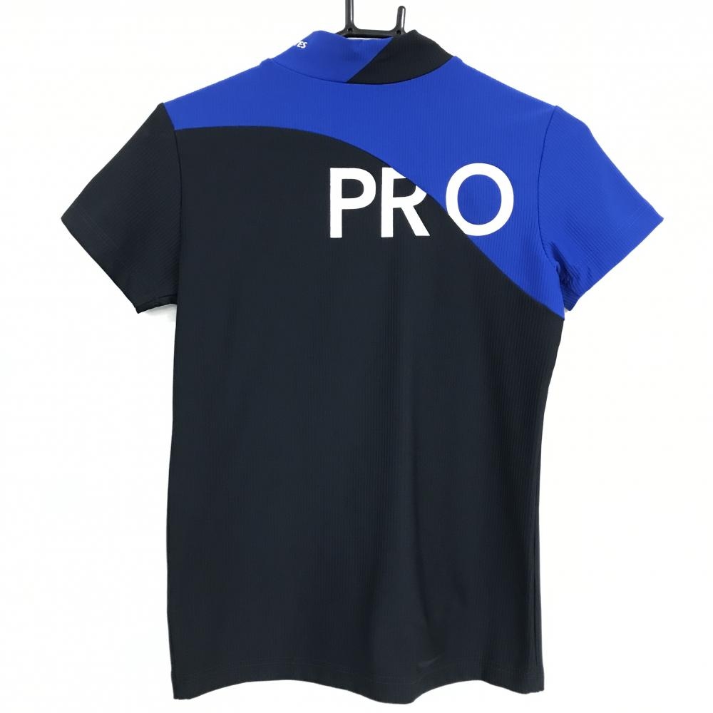 【美品】パーリーゲイツ 半袖ハイネックシャツ 黒×ブルー バイカラー レディース 0(S) ゴルフウェア 2024年モデル PEARLY GATES