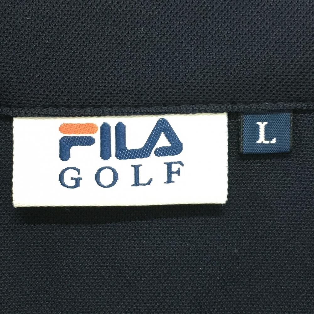 フィラゴルフ 半袖ハイネックシャツ ネイビー×白 ボーダー ハーフジップ レディース L ゴルフウェア FILA GOLF