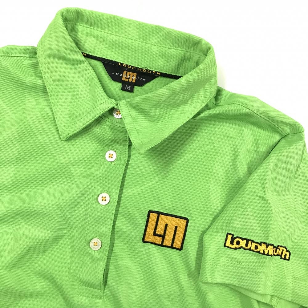 【美品】ラウドマウス 半袖ポロシャツ ライトグリーン 総柄地模様 シャガデリック レディース M ゴルフウェア LOUDMOUTH